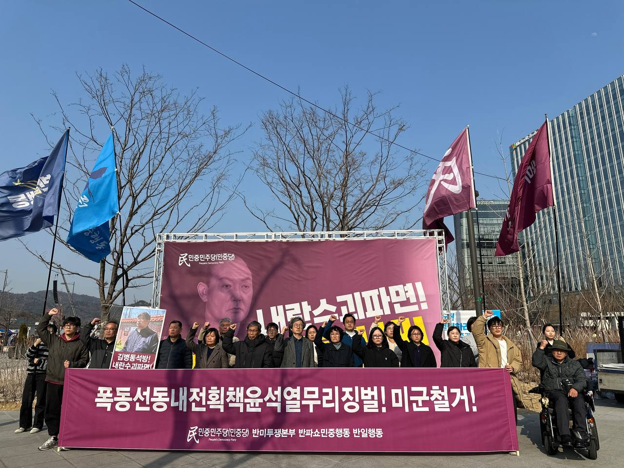 8일 민중민주당(민중당)·반미투쟁본부·반파쇼민중행동·반일행동은 미대사관앞에서 <폭동선동내전획책윤석열무리징벌! 미군철거!> 반파쇼반제집회를 진행했다.