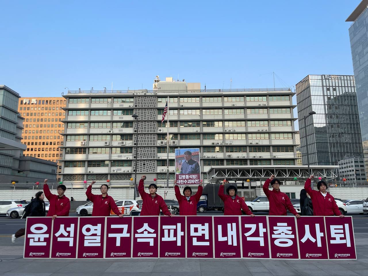 1일 민중민주당(민중당)은 미대사관앞에서 <내란수괴 파면!구속! 내란배후 미군철거!> 구호를 들고 평화시위를 3177일째 전개했다.