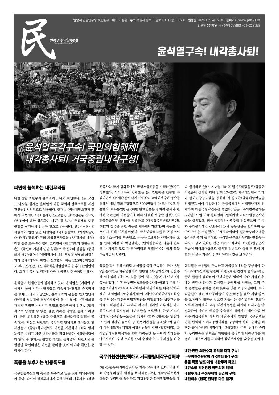 Home 자료 당신문<民> 민중민주당신문 民150호 〈윤석열구속! 내각총사퇴!〉 발행!