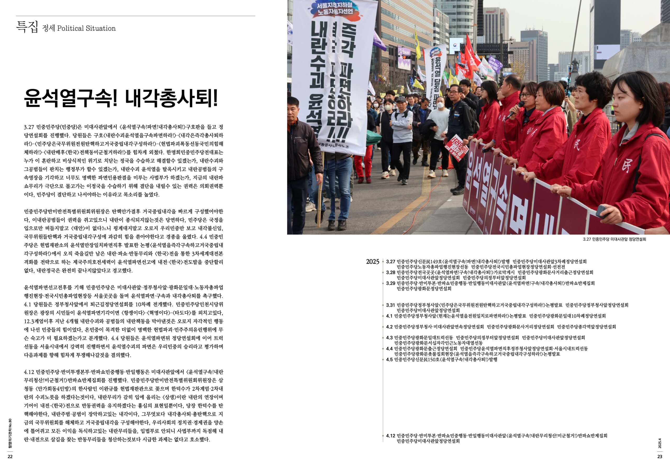 민중민주당반미반전특별위원회위원장은 탄핵안가결후 거국중립내각을 빠르게 구성했어야한다, 이내란공범들이 권력을 쥐고있으니 내란이 종식되지않는것은 당연하다, 민주당은 국정을 입으로만 떠들지말고 <대안>이 없다느니 핑계대지말고 오로지 우리민중만 보고 내각불신임, 국무위원들탄핵과 거국중립내각구성에 과감히 힘을 쏟아야한다고 경종을 울렸다. 4.4 민중민주당은 헌법재판소의 윤석열만장일치파면직후 발표한 논평<윤석열을즉각구속하고거국중립내각구성하라!>에서 오직 죽을길만 남은 내란·파쇼·반동무리와 <한국>전을 통한 3차세계대전본격화를 전략으로 하는 제국주의호전세력이 윤석열파면선고에 내전·<한국>전도발을 중단할리 없다, 내란정국은 완전히 끝나지않았다고 경고했다.