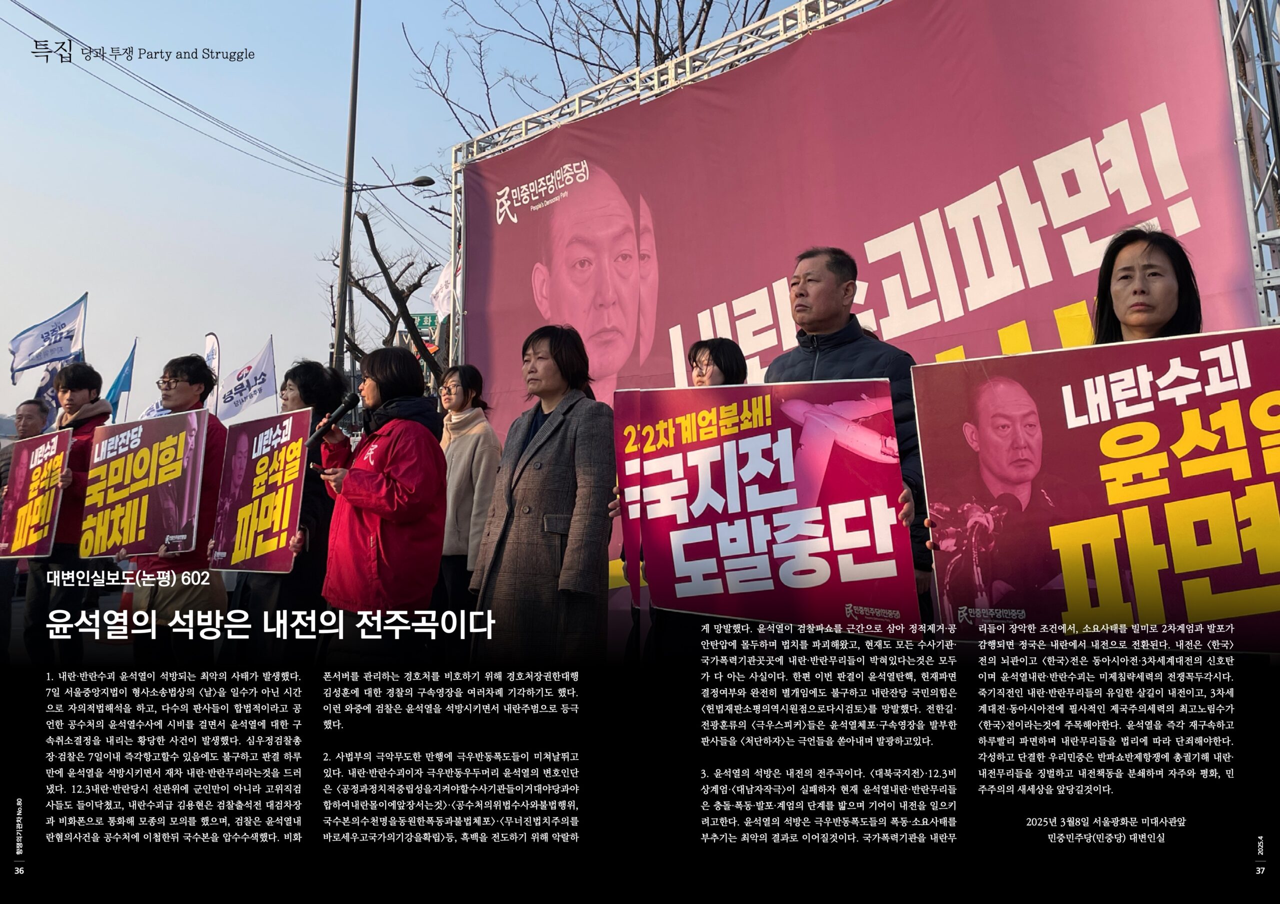 2. 사법부의 극악무도한 만행에 극우반동폭도들이 미쳐날뛰고있다. 내란·반란수괴이자 극우반동우두머리 윤석열의 변호인단은 <공정과정치적중립성을지켜야할수사기관들이거대야당과야합하여내란몰이에앞장서는것>·<공수처의위법수사와불법행위,국수본의수천명을동원한폭동과불법체포>·<무너진법치주의를바로세우고국가의기강을확립>등, 흑백을 전도하기 위해 악랄하게 망발했다. 윤석열이 검찰파쇼를 근간으로 삼아 정적제거·공안탄압에 몰두하며 법치를 파괴해왔고, 현재도 모든 수사기관·국가폭력기관곳곳에 내란·반란무리들이 박혀있다는것은 모두가 다 아는 사실이다. 한편 이번 판결이 윤석열탄핵, 헌재파면결정여부와 완전히 별개임에도 불구하고 내란잔당 국민의힘은 <헌법재판소평의역시원점으로다시검토>를 망발했다. 전한길·전광훈류의 <극우스피커>들은 윤석열체포·구속영장을 발부한 판사들을 <처단하자>는 극언들을 쏟아내며 발광하고있다.