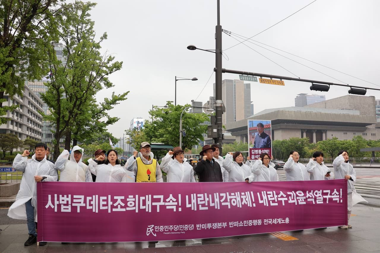 10일 민중민주당(민중당)·반미투쟁본부·반파쇼민중행동·전국세계노총(준)은 미대사관앞에서 <사법쿠데타조희대구속! 내란내각해체! 내란수괴윤석열구속!> 반파쇼반제집회를 진행했다.