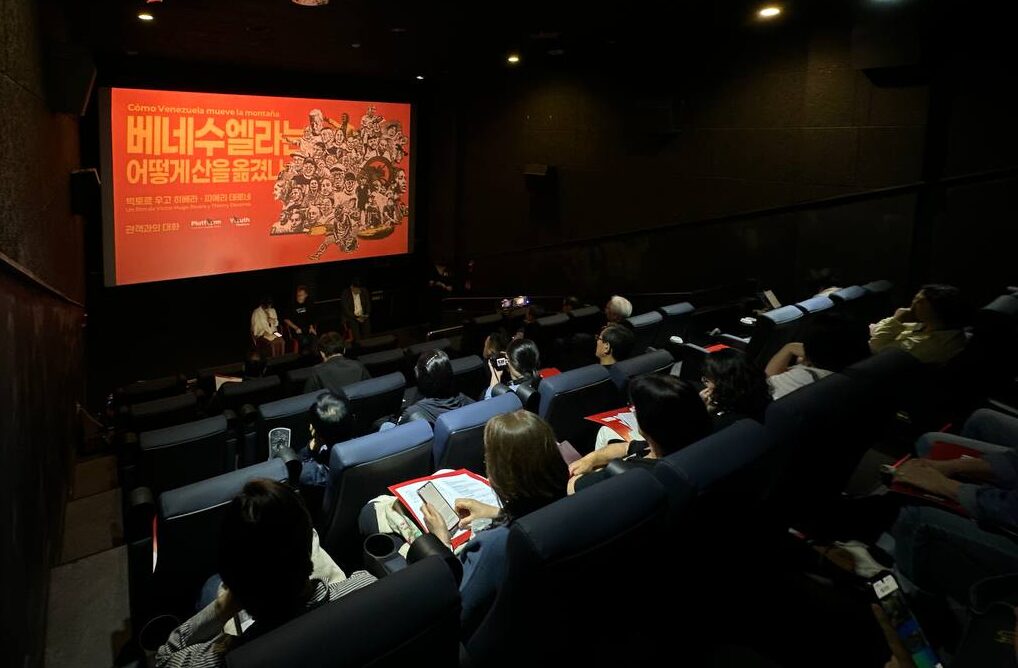 23일 세계반제플랫포옴(The World Anti-imperialist Platform)·유스플랫포옴(Youth Platform)이 공동주최하는 <베네수엘라는 어떻게 산을 옮겼나>영화상영 및 GV(관객과의 대화)가 광주, 강원도 양구, 인천, 전주에 이어 충남 공주에서 성황리에 진행됐다.
