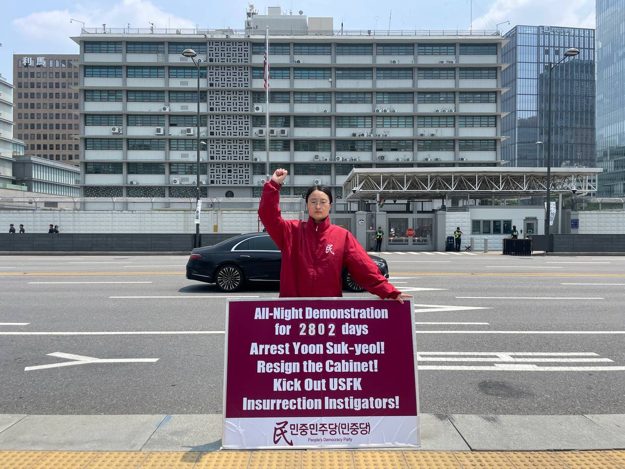 29일 민중민주당(민중당)은 미대사관앞에서 <윤석열구속! 내각총사퇴! 내란배후 미군철거!> 구호를 들고 평화시위를 3236일째 전개했다.
