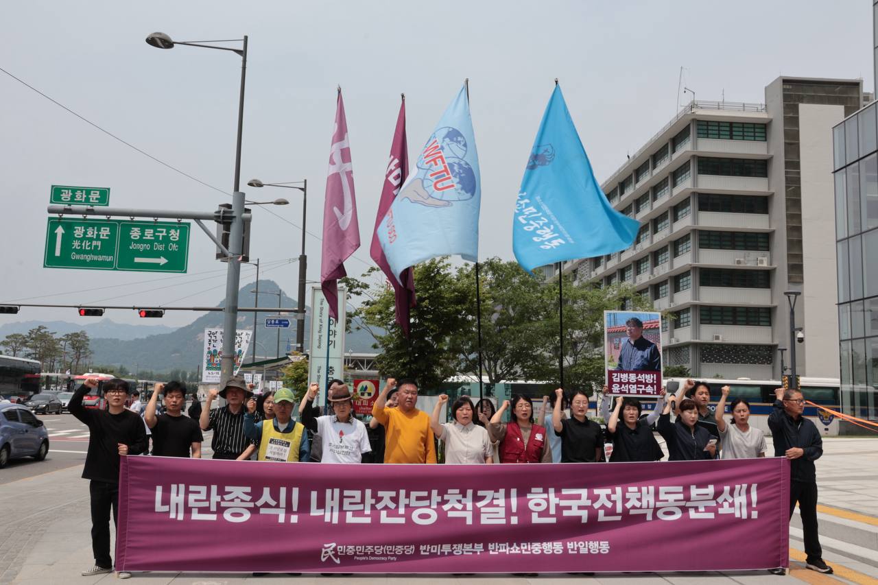 31일 민중민주당(민중당)·반미투쟁본부·반파쇼민중행동·전국세계노총(준)은 미대사관앞에서 <내란종식! 내란잔당척결! 한국전책동분쇄!>반파쇼반제집회를 진행했다.