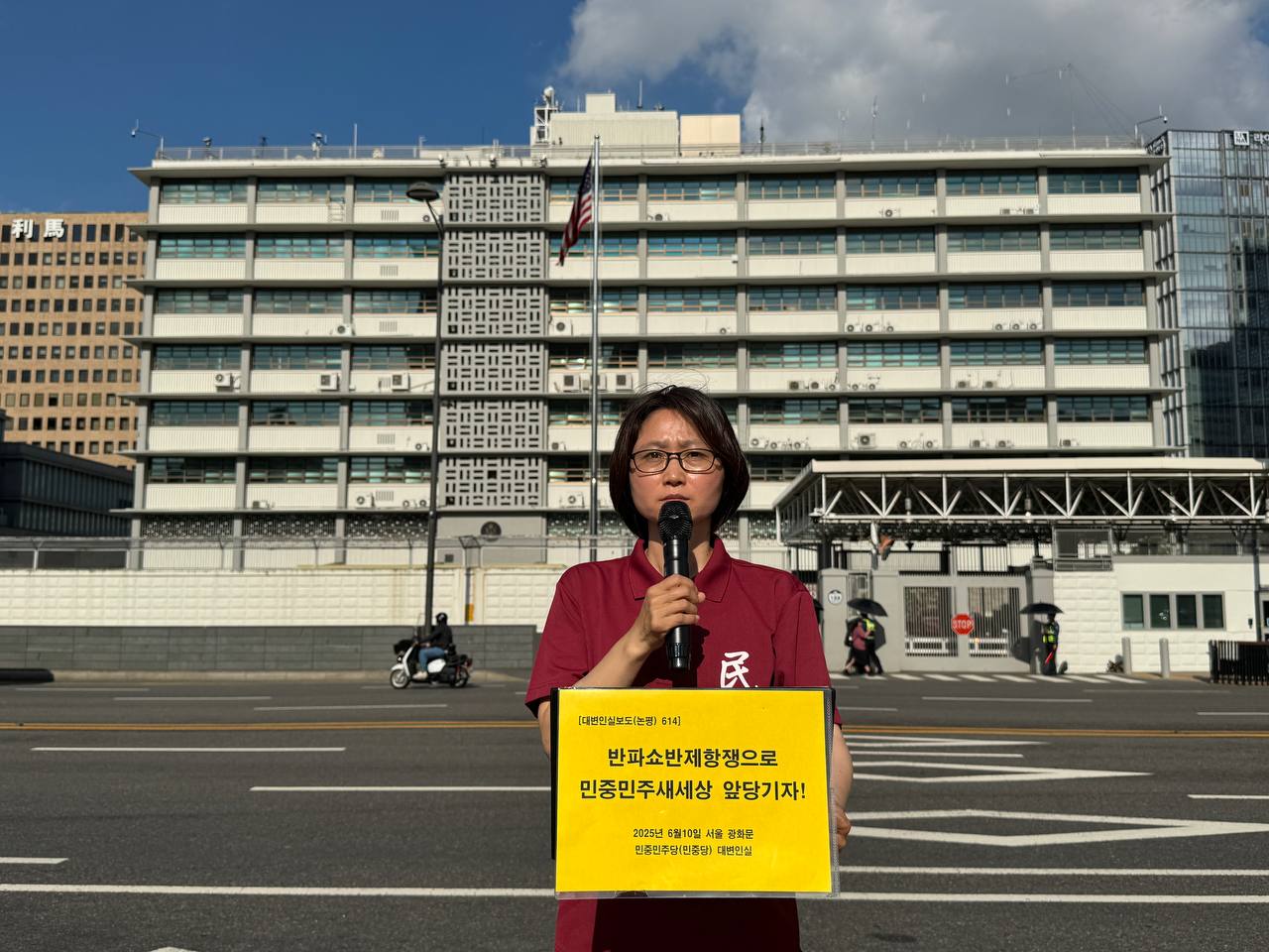 3. <오늘의 6월항쟁>은 반파쇼반제항쟁이다. 12.3내란·국지전도발이 3차세계대전정세속에서 <한국>전책동과 동시에 진행됐다는 점에 주목해야 한다. 내란무리들은 <군사쿠데타>가 실패하자 <사법쿠데타>, <정치쿠데타>를 감행하고 <신북풍>·테러공작으로 <선거쿠데타>획책과 내전심화·국지전도발에 발악했다. 미군핵전략자산이 투입된 대조선침략연습은 내란정국에도 빈번하게 전개됐고 미<한>군사연습은 지난해 대비 10건이나 더 많이 실시되고 있다. 동유럽에서 시작된 3차세계대전의 폭풍이 서아시아를 거쳐 동아시아·서태평양으로 불고 있는 정세를 과학적으로 인식하며 내란배후와 내란무리척결에 나서야 한다. 진정한 내란종식은 내전·<한국>전위기의 종식이며 민중민주의 실현이다. 우리민중은 정의로운 반파쇼항쟁의 주역으로서 반파쇼반제항쟁에 떨쳐나서 내란무리를 징벌하고 내전·<한국>전책동을 분쇄하며 미제침략군이 철거된 민중민주새세상을 앞당겨 실현할 것이다.