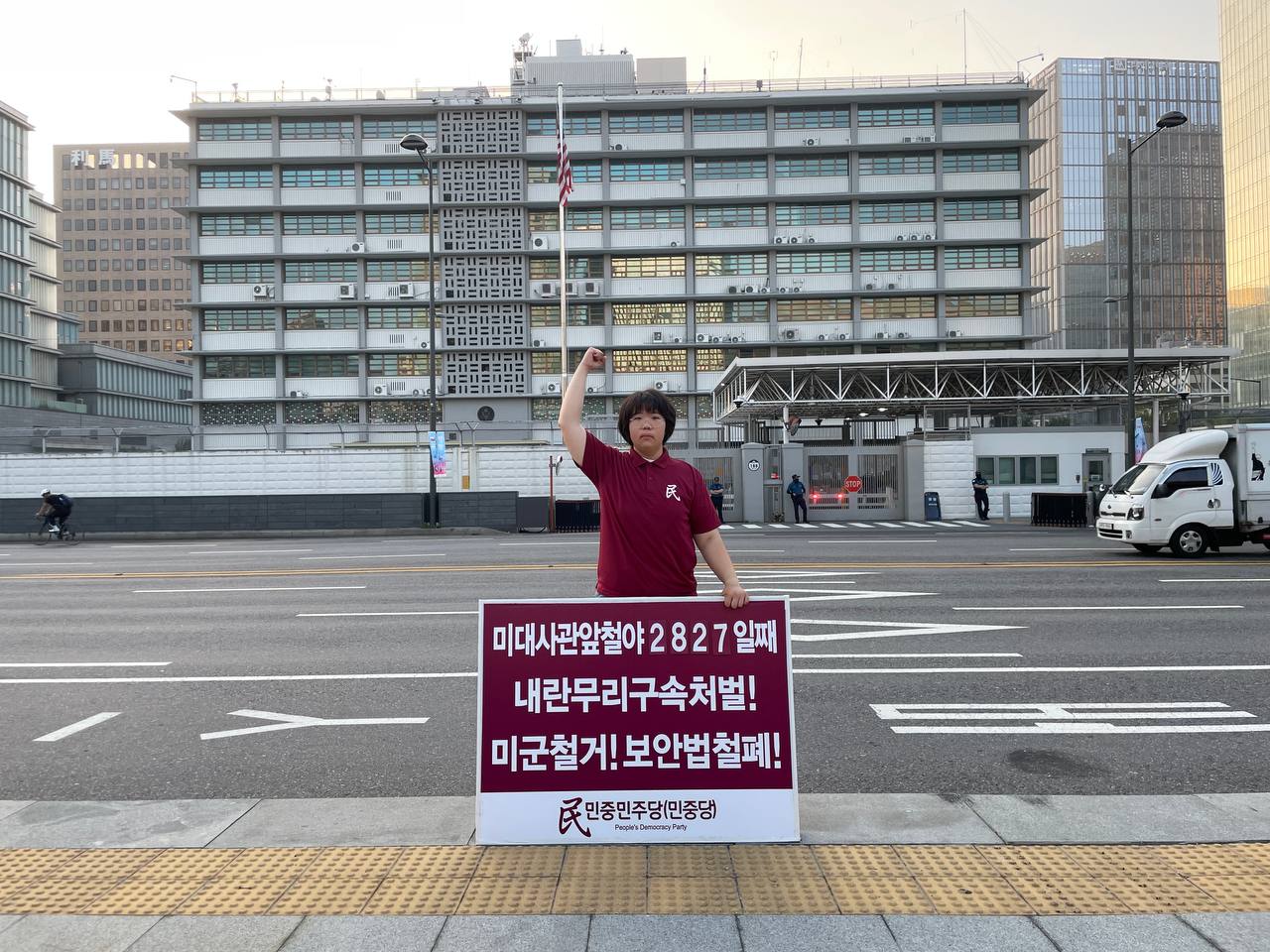 23일 민중민주당(민중당)은 미대사관앞에서 <내전책동 내란무리처벌! 전쟁책동 미군철거!> 구호를 들고 평화시위를 3260일째 전개했다.