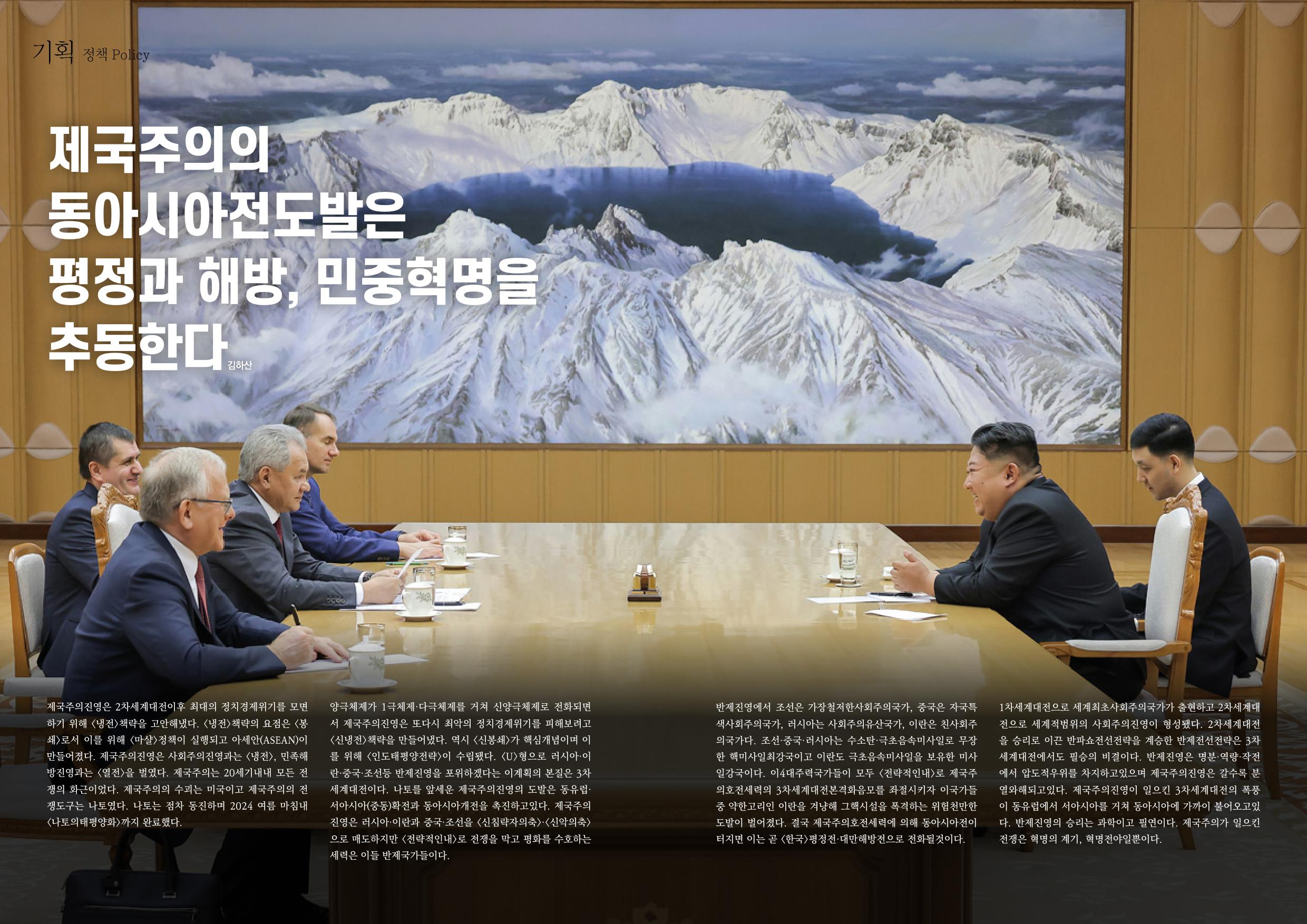 1차세계대전으로 세계최초사회주의국가가 출현하고 2차세계대전으로 세계적범위의 사회주의진영이 형성됐다. 2차세계대전을 승리로 이끈 반파쇼전선전략을 계승한 반제전선전략은 3차세계대전에서도 필승의 비결이다. 반제진영은 명분·역량·작전에서 압도적우위를 차지하고있으며 제국주의진영은 갈수록 분열와해되고있다. 제국주의진영이 일으킨 3차세계대전의 폭풍이 동유럽에서 서아시아를 거쳐 동아시아에 가까이 불어오고있다. 반제진영의 승리는 과학이고 필연이다. 제국주의가 일으킨 전쟁은 혁명의 계기, 혁명전야일뿐이다.
