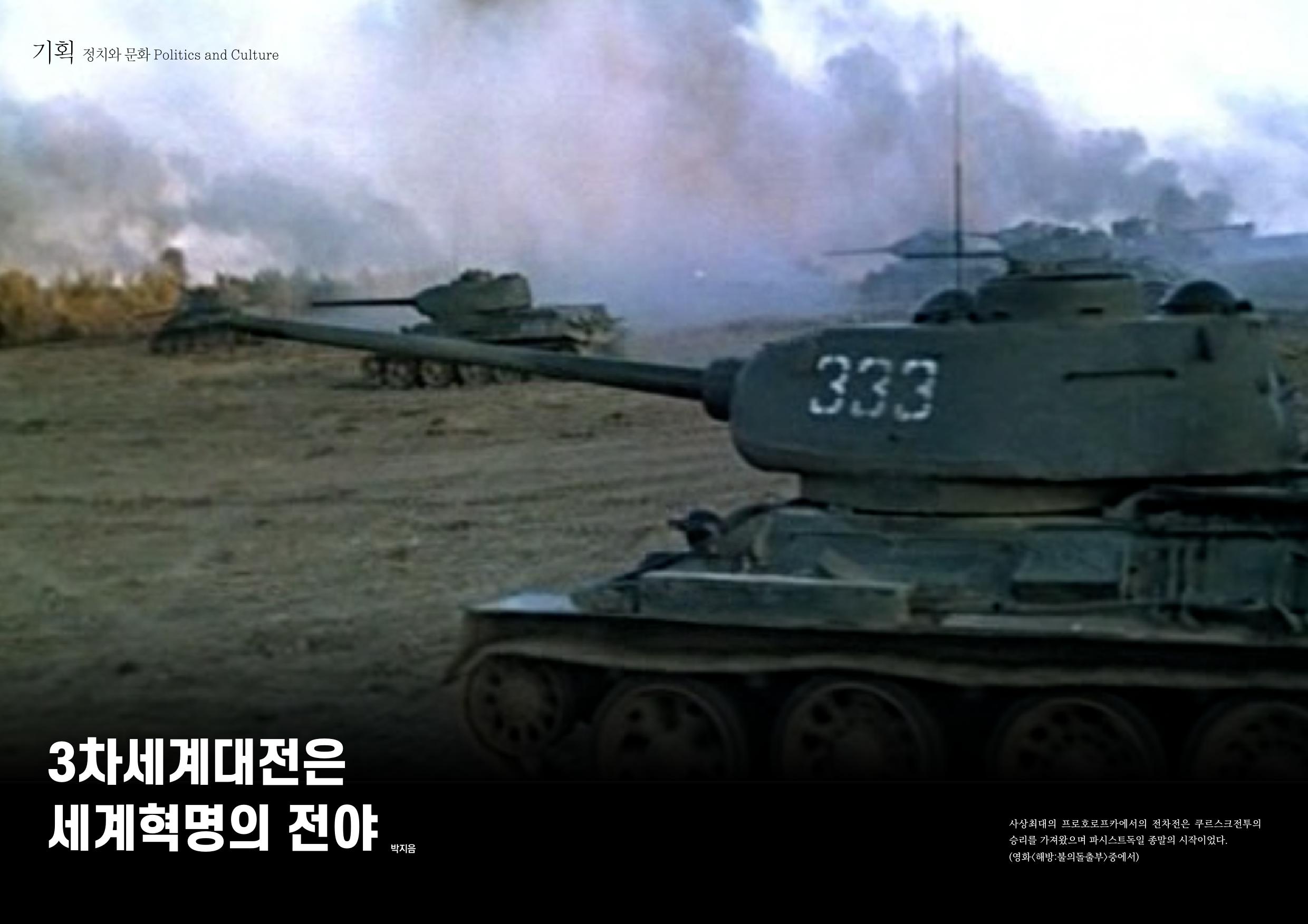 항쟁의기관차 〈2025.7 항쟁의기관차〉 3차세계대전은 세계혁명의 전야 2025년 7월 28일 FacebookTwitter 사상최대의 프로호로프카에서의 전차전은 쿠르스크전투의 승리를 가져왔으며 파시스트독일 종말의 시작이었다. (영화<해방:불의돌출부>중에서)