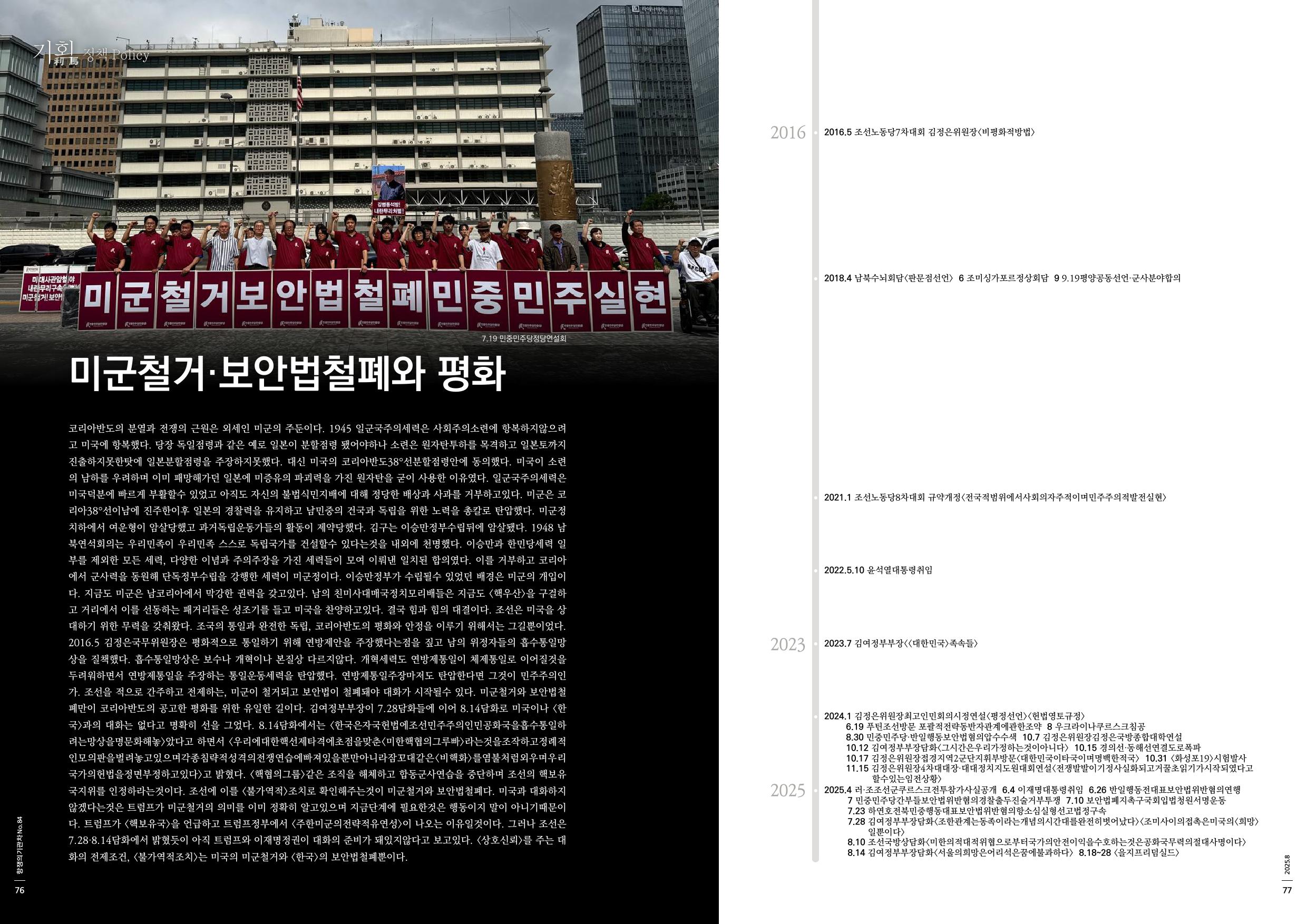 코리아반도의 분열과 전쟁의 근원은 외세인 미군의 주둔이다. 1945 일군국주의세력은 사회주의소련에 항복하지않으려고 미국에 항복했다. 당장 독일점령과 같은 예로 일본이 분할점령 됐어야하나 소련은 원자탄투하를 목격하고 일본토까지 진출하지못한탓에 일본분할점령을 주장하지못했다. 대신 미국의 코리아반도38°선분할점령안에 동의했다. 미국이 소련의 남하를 우려하며 이미 패망해가던 일본에 미증유의 파괴력을 가진 원자탄을 굳이 사용한 이유였다. 일군국주의세력은 미국덕분에 빠르게 부활할수 있었고 아직도 자신의 불법식민지배에 대해 정당한 배상과 사과를 거부하고있다. 미군은 코리아38°선이남에 진주한이후 일본의 경찰력을 유지하고 남민중의 건국과 독립을 위한 노력을 총칼로 탄압했다. 미군정치하에서 여운형이 암살당했고 과거독립운동가들의 활동이 제약당했다. 김구는 이승만정부수립뒤에 암살됐다. 1948 남북연석회의는 우리민족이 우리민족 스스로 독립국가를 건설할수 있다는것을 내외에 천명했다. 이승만과 한민당세력 일부를 제외한 모든 세력, 다양한 이념과 주의주장을 가진 세력들이 모여 이뤄낸 일치된 합의였다. 이를 거부하고 코리아에서 군사력을 동원해 단독정부수립을 강행한 세력이 미군정이다. 이승만정부가 수립될수 있었던 배경은 미군의 개입이다. 지금도 미군은 남코리아에서 막강한 권력을 갖고있다. 남의 친미사대매국정치모리배들은 지금도 <핵우산>을 구걸하고 거리에서 이를 선동하는 패거리들은 성조기를 들고 미국을 찬양하고있다. 결국 힘과 힘의 대결이다. 조선은 미국을 상대하기 위한 무력을 갖춰왔다. 조국의 통일과 완전한 독립, 코리아반도의 평화와 안정을 이루기 위해서는 그길뿐이었다. 2016.5 김정은국무위원장은 평화적으로 통일하기 위해 연방제안을 주장했다는점을 짚고 남의 위정자들의 흡수통일망상을 질책했다. 흡수통일망상은 보수나 개혁이나 본질상 다르지않다. 개혁세력도 연방제통일이 체제통일로 이어질것을 두려워하면서 연방제통일을 주장하는 통일운동세력을 탄압했다. 연방제통일주장마저도 탄압한다면 그것이 민주주의인가. 조선을 적으로 간주하고 전제하는, 미군이 철거되고 보안법이 철폐돼야 대화가 시작될수 있다. 미군철거와 보안법철폐만이 코리아반도의 공고한 평화를 위한 유일한 길이다. 김여정부부장이 7.28담화들에 이어 8.14담화로 미국이나 <한국>과의 대화는 없다고 명확히 선을 그었다. 8.14담화에서는 <한국은자국헌법에조선민주주의인민공화국을흡수통일하려는망상을명문화해놓>았다고 하면서 <우리에대한핵선제타격에초점을맞춘<미한핵협의그루빠>라는것을조작하고정례적인모의판을벌려놓고있으며각종침략적성격의전쟁연습에빠져있을뿐만아니라잠꼬대같은<비핵화>를염불처럼외우며우리국가의헌법을정면부정하고있다>고 밝혔다. <핵협의그룹>같은 조직을 해체하고 합동군사연습을 중단하며 조선의 핵보유국지위를 인정하라는것이다. 조선에 이를 <불가역적>조치로 확인해주는것이 미군철거와 보안법철폐다. 미국과 대화하지않겠다는것은 트럼프가 미군철거의 의미를 이미 정확히 알고있으며 지금단계에 필요한것은 행동이지 말이 아니기때문이다. 트럼프가 <핵보유국>을 언급하고 트럼프정부에서 <주한미군의전략적유연성>이 나오는 이유일것이다. 그러나 조선은 7.28·8.14담화에서 밝혔듯이 아직 트럼프와 이재명정권이 대화의 준비가 돼있지않다고 보고있다. <상호신뢰>를 주는 대화의 전제조건, <불가역적조치>는 미국의 미군철거와 <한국>의 보안법철폐뿐이다.