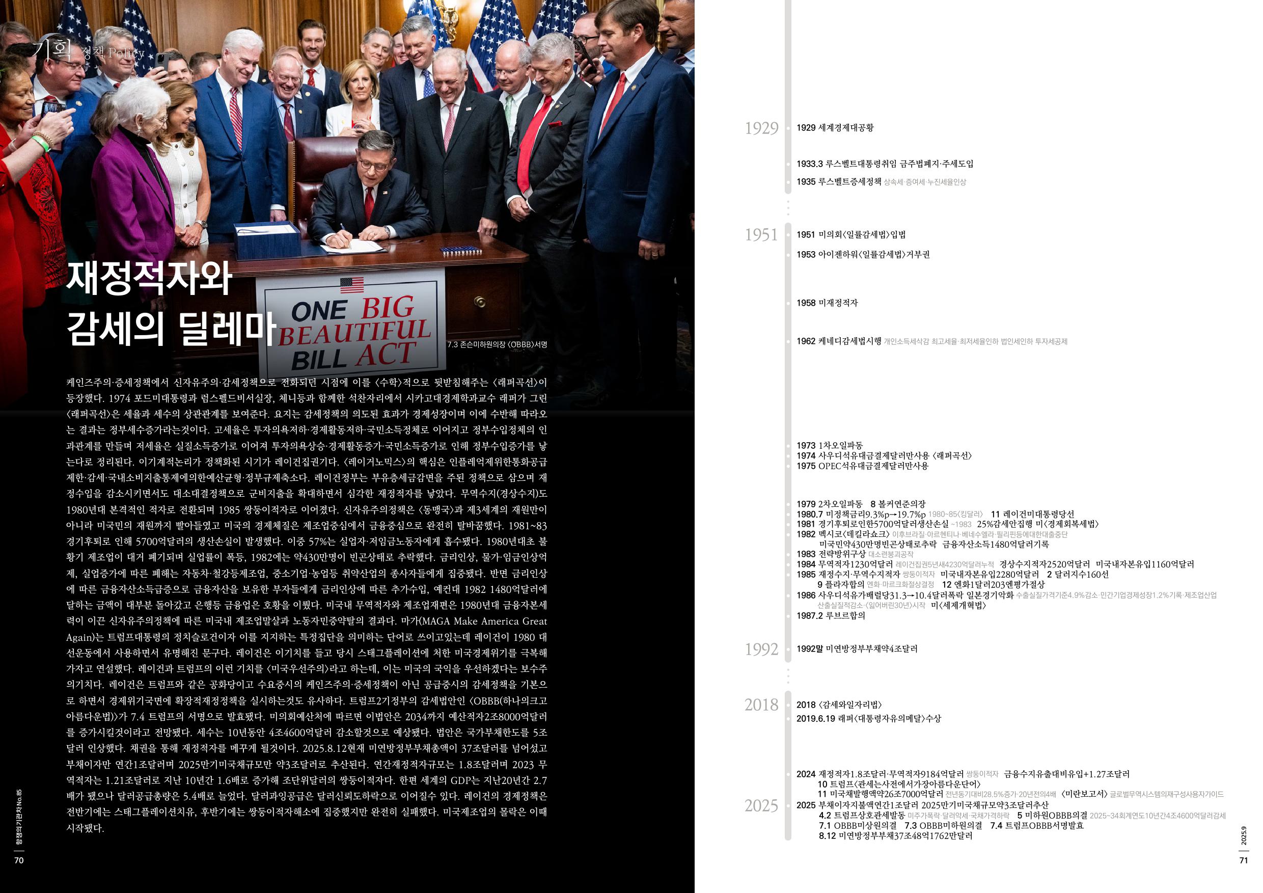 케인즈주의·증세정책에서 신자유주의·감세정책으로 전화되던 시점에 이를 <수학>적으로 뒷받침해주는 <래퍼곡선>이 등장했다. 1974 포드미대통령과 럼스펠드비서실장, 체니등과 함께한 석찬자리에서 시카고대경제학과교수 래퍼가 그린 <래퍼곡선>은 세율과 세수의 상관관계를 보여준다. 요지는 감세정책의 의도된 효과가 경제성장이며 이에 수반해 따라오는 결과는 정부세수증가라는것이다. 고세율은 투자의욕저하·경제활동저하·국민소득정체로 이어지고 정부수입정체의 인과관계를 만들며 저세율은 실질소득증가로 이어져 투자의욕상승·경제활동증가·국민소득증가로 인해 정부수입증가를 낳는다로 정리된다. 이기계적논리가 정책화된 시기가 레이건집권기다. <레이거노믹스>의 핵심은 인플레억제위한통화공급제한·감세·국내소비지출통제에의한예산균형·정부규제축소다. 레이건정부는 부유층세금감면을 주된 정책으로 삼으며 재정수입을 감소시키면서도 대소대결정책으로 군비지출을 확대하면서 심각한 재정적자를 낳았다. 무역수지(경상수지)도 1980년대 본격적인 적자로 전환되며 1985 쌍둥이적자로 이어졌다. 신자유주의정책은 <동맹국>과 제3세계의 재원만이 아니라 미국민의 재원까지 빨아들였고 미국의 경제체질은 제조업중심에서 금융중심으로 완전히 탈바꿈했다. 1981~83 경기후퇴로 인해 5700억달러의 생산손실이 발생했다. 이중 57%는 실업자·저임금노동자에게 흡수됐다. 1980년대초 불황기 제조업이 대거 폐기되며 실업률이 폭등, 1982에는 약430만명이 빈곤상태로 추락했다. 금리인상, 물가·임금인상억제, 실업증가에 따른 폐해는 자동차·철강등제조업, 중소기업·농업등 취약산업의 종사자들에게 집중됐다. 반면 금리인상에 따른 금융자산소득급증으로 금융자산을 보유한 부자들에게 금리인상에 따른 추가수입, 예컨대 1982 1480억달러에 달하는 금액이 대부분 돌아갔고 은행등 금융업은 호황을 이뤘다. 미국내 무역적자와 제조업재편은 1980년대 금융자본세력이 이끈 신자유주의정책에 따른 미국내 제조업말살과 노동자민중약탈의 결과다. 마가(MAGA Make America Great Again)는 트럼프대통령의 정치슬로건이자 이를 지지하는 특정집단을 의미하는 단어로 쓰이고있는데 레이건이 1980 대선운동에서 사용하면서 유명해진 문구다. 레이건은 이기치를 들고 당시 스태그플레이션에 처한 미국경제위기를 극복해가자고 연설했다. 레이건과 트럼프의 이런 기치를 <미국우선주의>라고 하는데, 이는 미국의 국익을 우선하겠다는 보수주의기치다. 레이건은 트럼프와 같은 공화당이고 수요중시의 케인즈주의·증세정책이 아닌 공급중시의 감세정책을 기본으로 하면서 경제위기국면에 확장적재정정책을 실시하는것도 유사하다. 트럼프2기정부의 감세법안인 <OBBB(하나의크고아름다운법)>가 7.4 트럼프의 서명으로 발효됐다. 미의회예산처에 따르면 이법안은 2034까지 예산적자2조8000억달러를 증가시킬것이라고 전망됐다. 세수는 10년동안 4조4600억달러 감소할것으로 예상됐다. 법안은 국가부채한도를 5조달러 인상했다. 채권을 통해 재정적자를 메꾸게 될것이다. 2025.8.12현재 미연방정부부채총액이 37조달러를 넘어섰고 부채이자만 연간1조달러며 2025만기미국채규모만 약3조달러로 추산된다. 연간재정적자규모는 1.8조달러며 2023 무역적자는 1.21조달러로 지난 10년간 1.6배로 증가해 조단위달러의 쌍둥이적자다. 한편 세계의 GDP는 지난20년간 2.7배가 됐으나 달러공급총량은 5.4배로 늘었다. 달러과잉공급은 달러신뢰도하락으로 이어질수 있다. 레이건의 경제정책은 전반기에는 스태그플레이션치유, 후반기에는 쌍둥이적자해소에 집중했지만 완전히 실패했다. 미국제조업의 몰락은 이때 시작됐다.