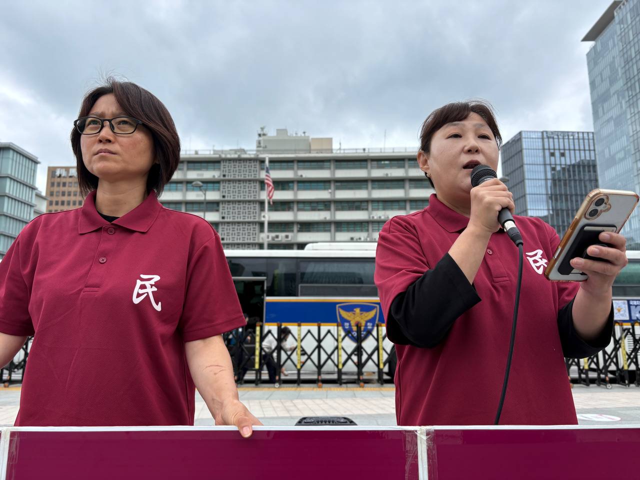 이어 <그리고 하루가 지난 오늘 이 자리에는 경찰병력이 광화문광장을 막고 있다. 누구를 위해서 이런 조치를 취한 것인가. 반미감정 고조된다고 언론에서 그렇게 떠들어대더니 미국이 요청한 것인가 아니면 이재명대통령이 통화스와프 결사반대하는 투쟁 저지하라고 한 것인가. 대미협상 중단할 것을 요구하는 목소리를 억누르라고 경찰에 지시를 내린 것인가. 강력히 규탄한다.>고 목소리를 높였다.