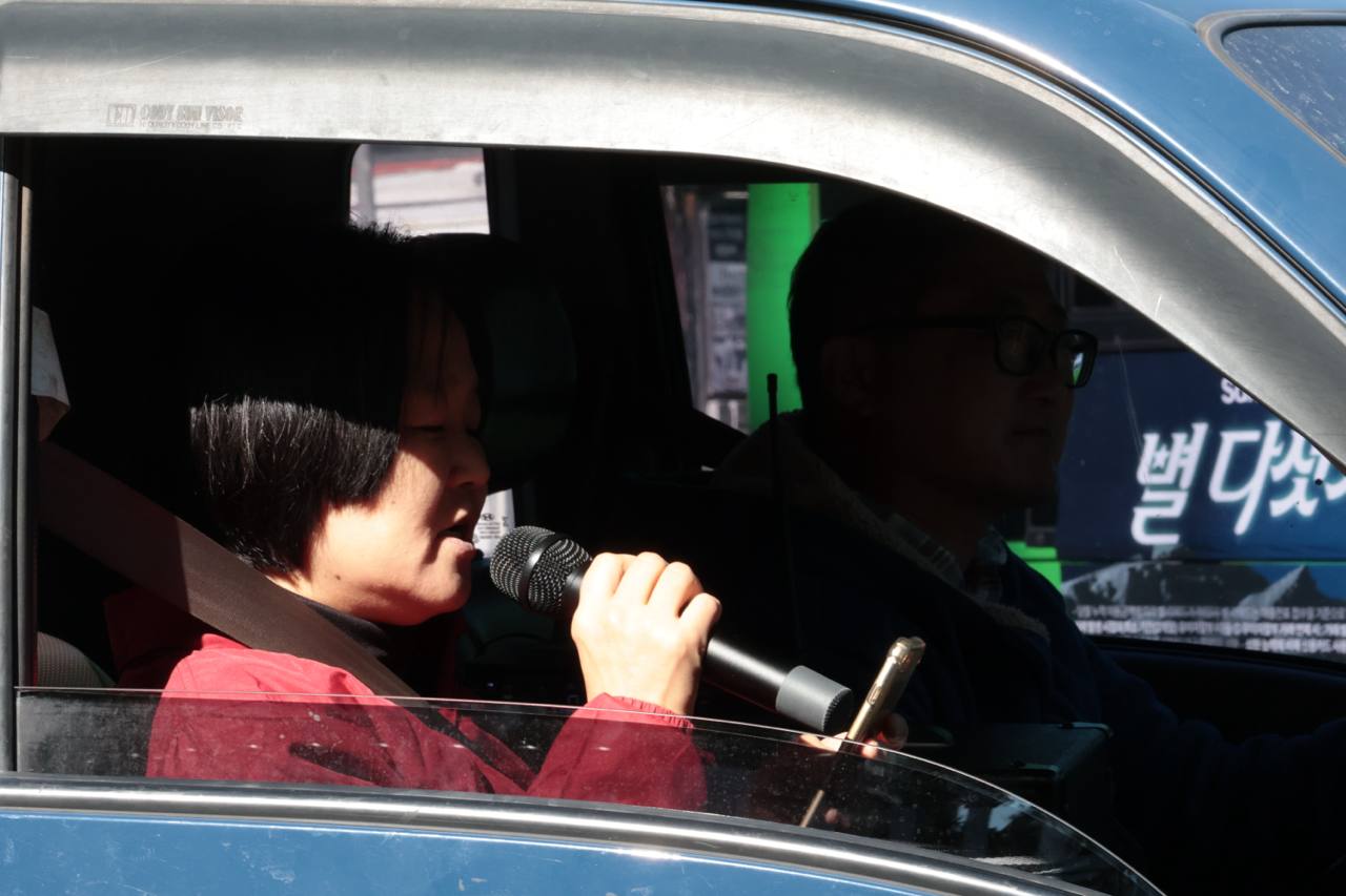 〈트럼프 방〈한〉 반대!〉 민중민주당 정부청사-시청일대 트럭선회