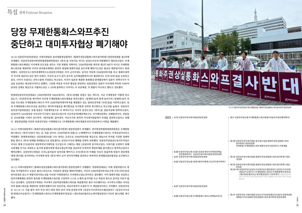 Home 항쟁의기관차 〈2025.10 항쟁의기관차〉 당장 무제한통화스와프추진 중단하고 대미투자협상 폐기해야