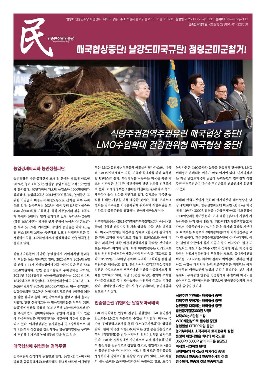 – 팩트시트에 담긴 농산물 비관세장벽 논의 … <개방 통로돼선 안돼> (농민신문, 2025.11.14)