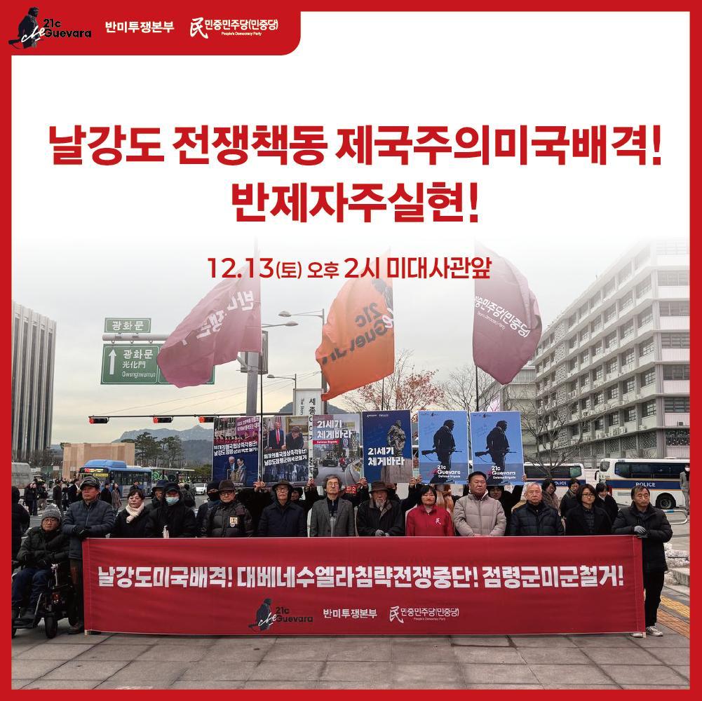 12.6토 14시 미대사관앞 〈날강도미국배격! 대베네수엘라침략전쟁중단! 점령군미군철거!〉정당연설회