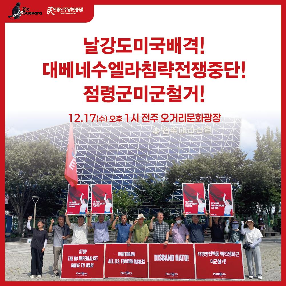 12.17수 13시 전주 오거리문화광장 〈날강도미국배격! 대베네수엘라침략전쟁중단! 점령군미군철거!〉정당연설회