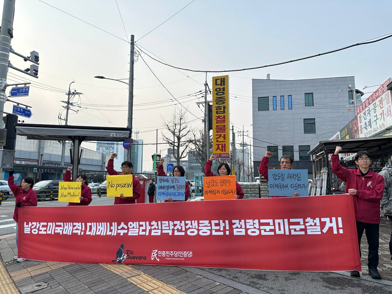 29일 민중민주당(민중당)은 공주터미널앞에서 <날강도미국배격! 대베네수엘라침략전쟁중단! 점령군미군철거!> 정당연설회를 진행했다.