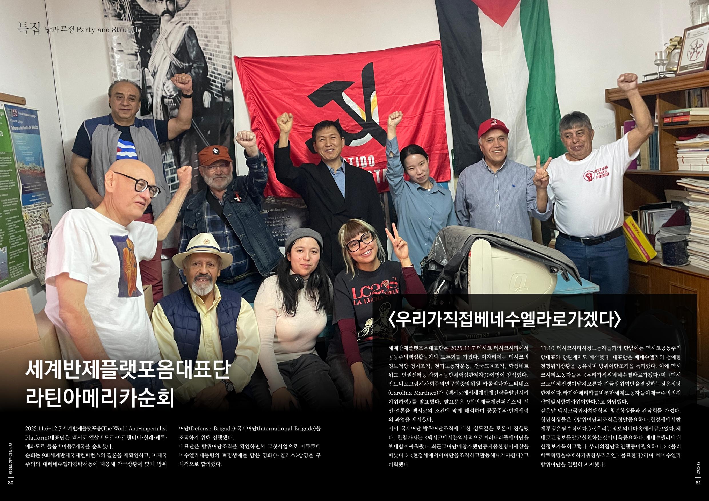2025.11.6~12.7 세계반제플랫포옴(The World Anti-imperialist Platform)대표단은 멕시코·엘살바도르·아르헨티나·칠레·페루·에콰도르·콜롬비아등7개국을 순회했다.