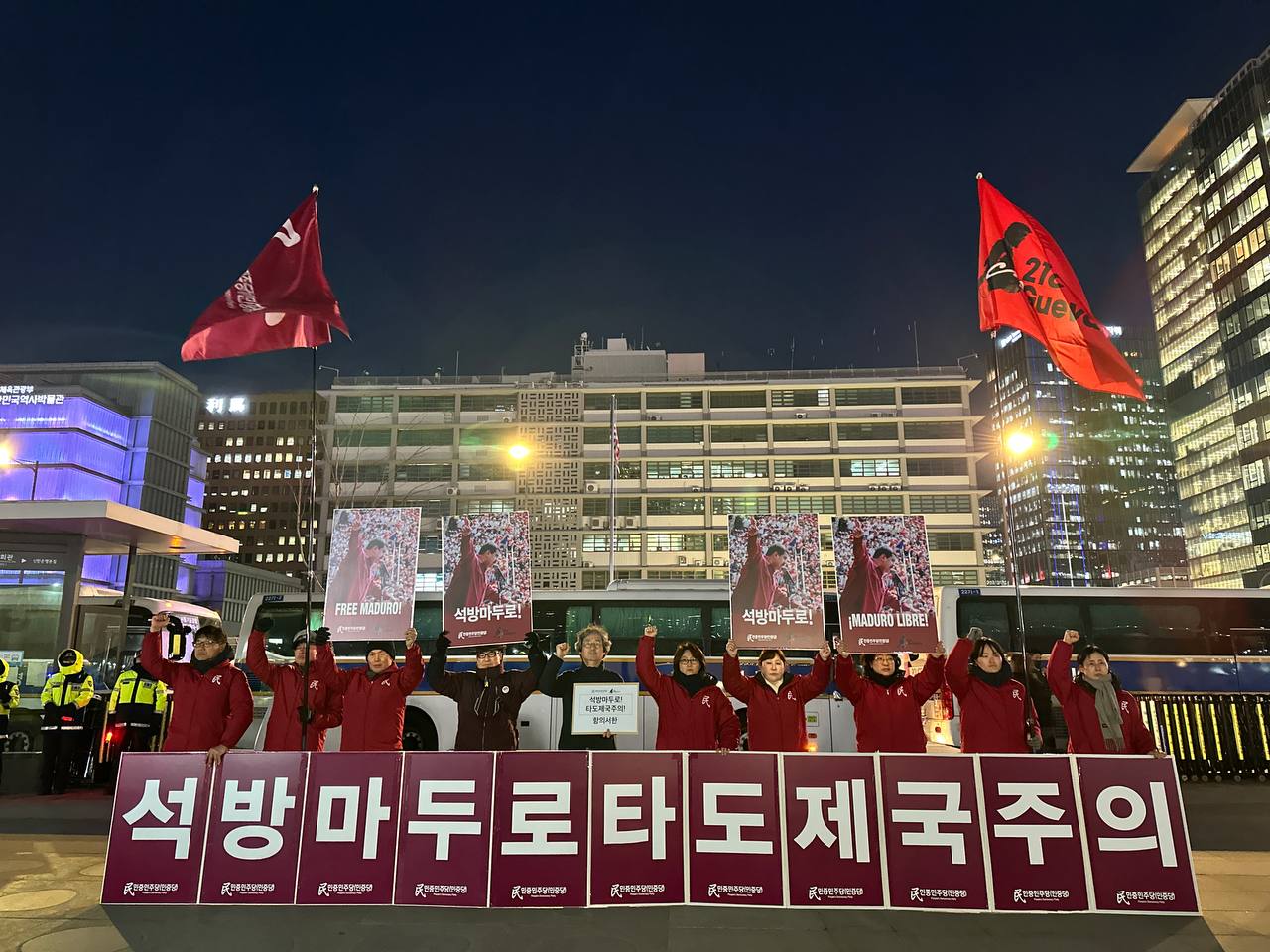 5일 민중민주당(민중당)은 미대사관앞에서 <석방마두로! 타도제국주의!> 정당연설회를 진행했다.