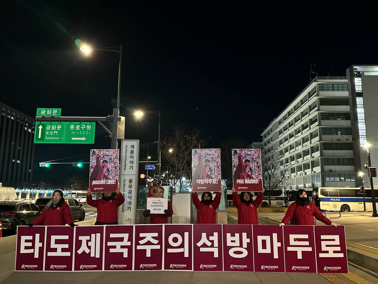 민중민주당노동자당원은 <전세계 민중이 지금 베네수엘라 상황을 접하면서 제국주의의 침략과 약탈이 무엇인지 똑똑하게 목도하고 있다. 미국은 베네수엘라의 석유자원을 강탈하기 위해 마약청정국·마약퇴치모범국 베네수엘라를 마약카르텔로 모략하여 실제 카리브해에서 30차례 넘게 민간선박을 공격해 100명이상을 학살했다. 지금 베네수엘라민중은 <대통령은 단 한명, 마두로대통령이며 우리는 미제국주의 식민지가 되는 것을 거부한다>라고 선언했다.>고 힘줘 말했다.