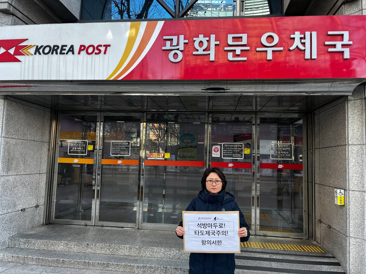 평화시위실천 민중민주당, 미대사관에 〈석방마두로! 타도제국주의!〉 항의서한 일일특급 등기 발송 2026년 1월 8일 FacebookTwitter 8일 민중민주당(민중당)은 주<한>미대사관 제임스헬러대사대리 앞으로 〈석방마두로! 타도제국주의!〉 항의서한을 일일특급 등기로 발송했다. 미대사관은 지난 6일과 7일, 민중민주당이 정당연설회 후 평화적인 방법으로 항의서한을 전달하려고 하자 경찰을 앞세워 항의서한을 전달받는 것을 거부한 바 있다. 일일특급 등기는 접수한 그날 안에 배달되는 등기우편으로, 항의서한은 당일 미대사관에 전달됐을 것으로 추정된다.