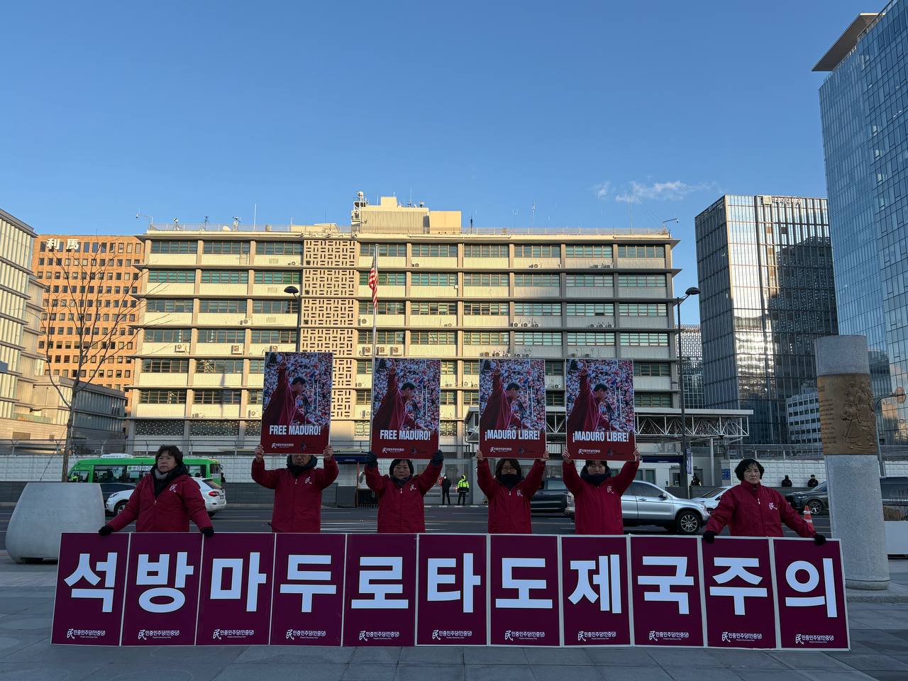 11일 민중민주당(민중당)은 미대사관앞에서 <석방마두로! 타도제국주의!> 13차정당연설회를 진행했다.