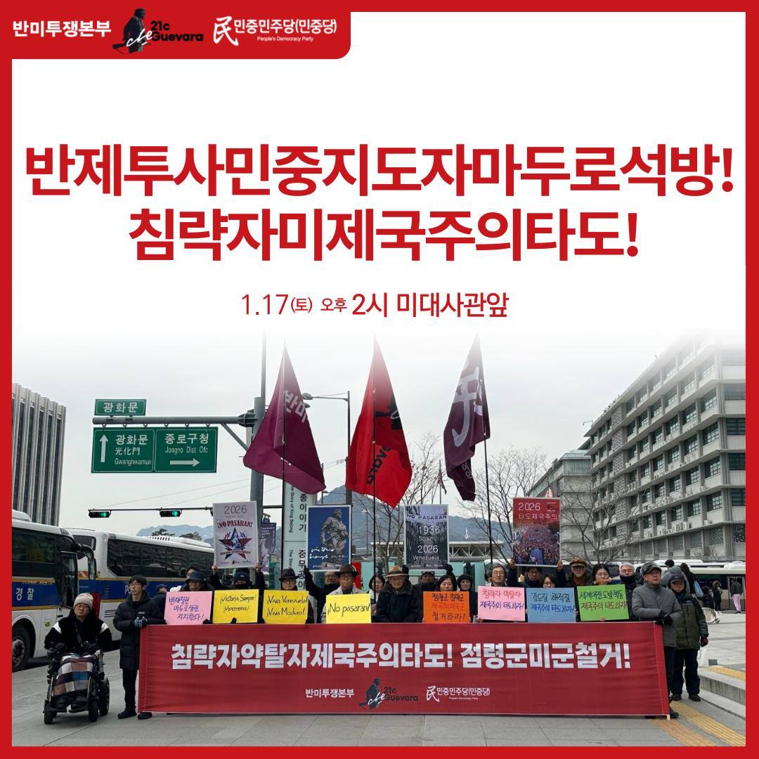 1.17토 14시 미대사관앞 〈반제투사민중지도자마두로석방! 침략자미제국주의타도!〉정당연설회