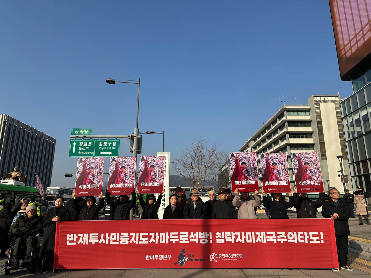 참가자들은 성명 <마두로 석방하라! 제국주의 타도하자!>를 낭독한 뒤 <인터내셔널가>를 불렀다.
