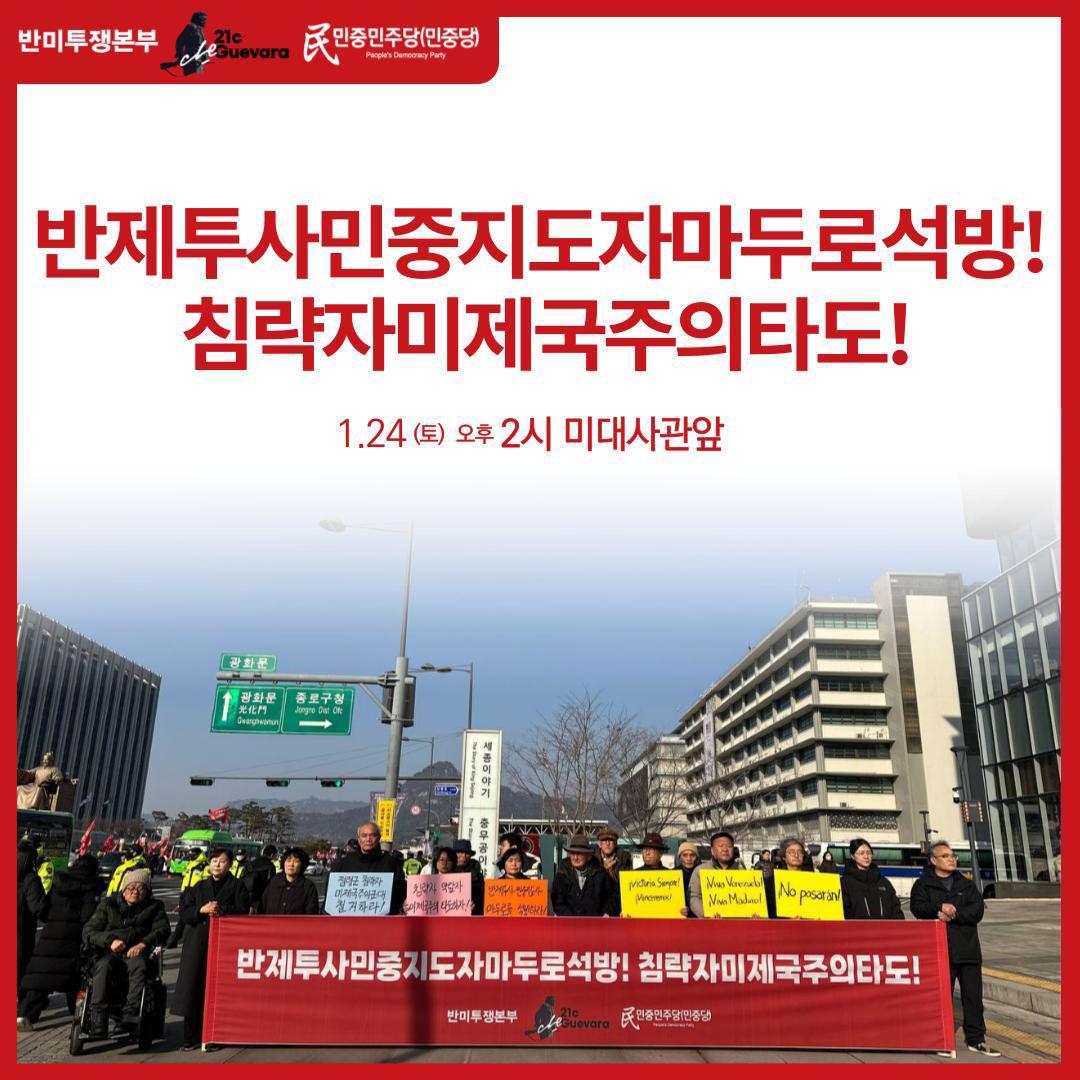 1.24토 14시 미대사관앞 〈반제투사민중지도자마두로석방! 침략자미제국주의타도!〉정당연설회