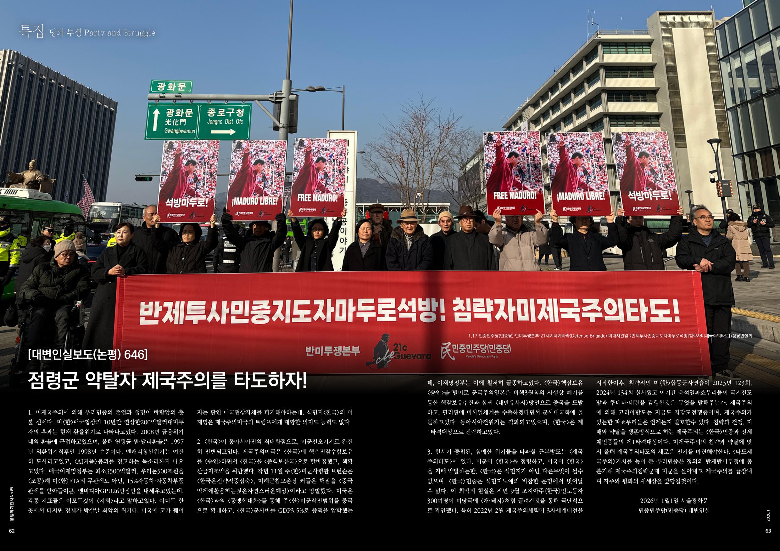 3. 현시기 중첩된, 첨예한 위기들을 타파할 근본방도는 <제국주의타도>에 있다. 미군이 <한국>을 점령하고, 미국이 <한국>을 지배·약탈하는 한, <한국>은 식민지가 아닌 다른 무엇이 될 수 없으며, <한국>민중은 식민지노예의 비참한 운명에서 벗어날 수 없다. 이 최악의 현실은 작년 9월 조지아주<한국>인노동자300여명이 미당국에 <개·돼지>처럼 끌려간 것을 통해 극단적으로 확인됐다. 특히 2022년 2월 제국주의세력이 3차세계대전을 시작한 이후, 침략적인 미<한>합동군사연습이 2023년 123회, 2024년 134회가 실시됐고 이 기간 윤석열파쇼무리들이 국지전도발과 쿠데타·내란을 감행한 것은 무엇을 말해주는가. 제국주의에 의해 코리아반도는 지금도 저강도전쟁 중이며, 제국주의가 있는 한 파쇼무리들은 언제든지 발호할 수 있다. 침략과 전쟁, 지배와 약탈을 생존방식으로 하는 제국주의는 <한국>민중과 전세계민중들의 제1타격대상이다. 미제국주의의 침략과 약탈에 맞서 올해 제국주의타도의 새로운 전기를 마련해야 한다. <타도제국주의>기치를 높이 든 우리민중은 정의의 반제반미투쟁에 총분기해 제국주의침략군대 미군을 몰아내고 제국주의를 끝장내며 자주와 평화의 새세상을 앞당길 것이다.