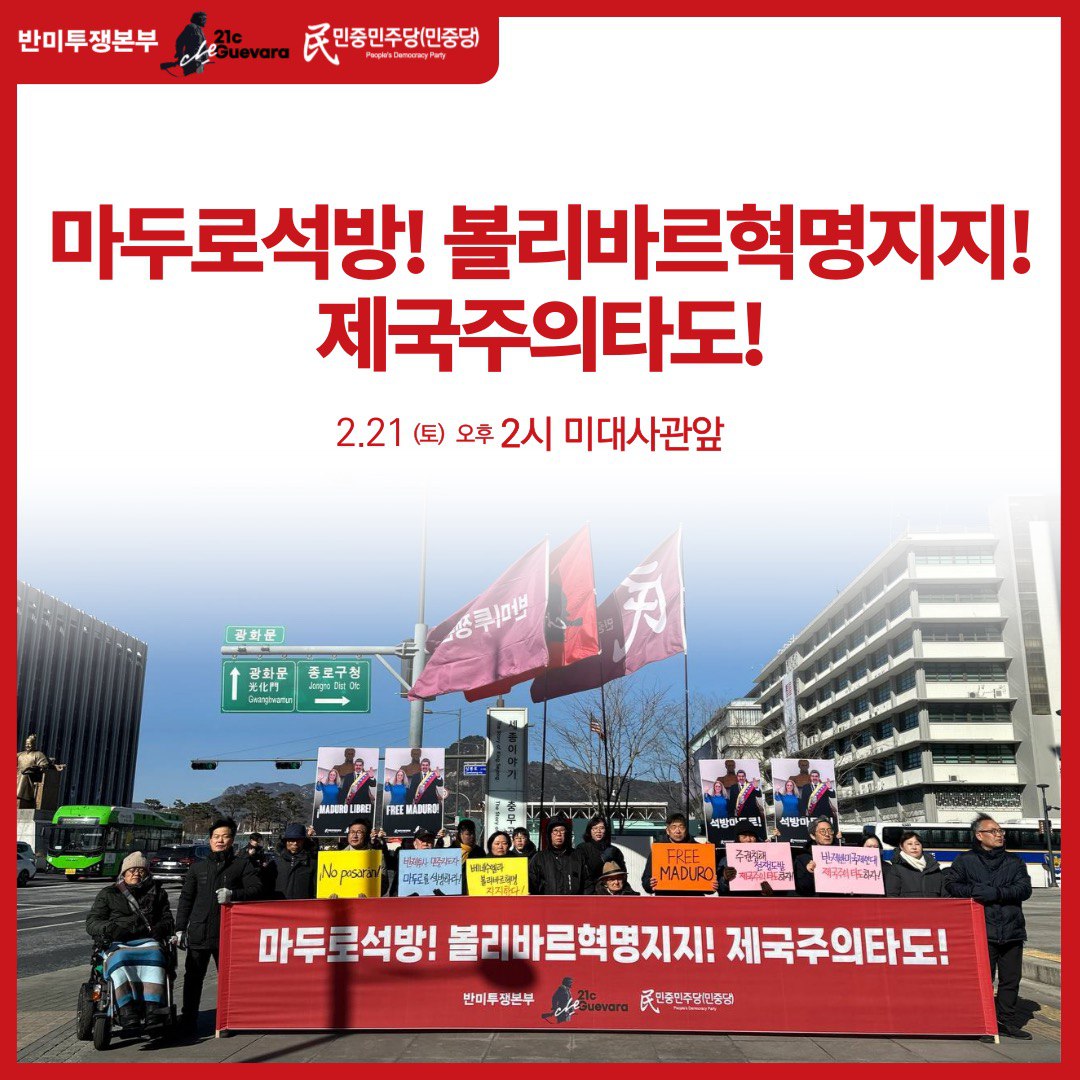 Home 소식 2.21토 14시 미대사관앞 〈마두로석방! 볼리바르혁명지지! 제국주의타도!〉정당연설회