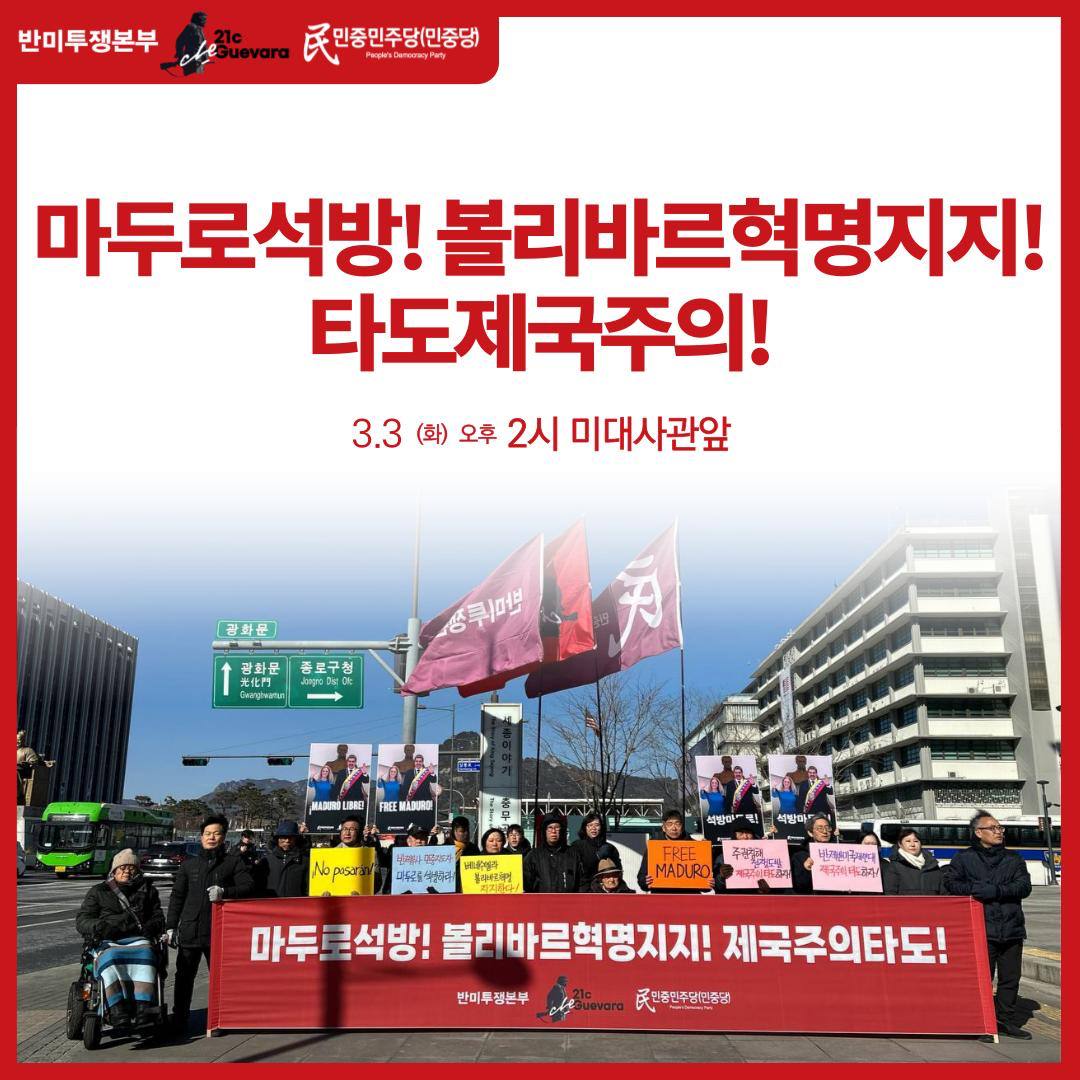 2.21토 14시 미대사관앞 〈마두로석방! 볼리바르혁명지지! 제국주의타도!〉정당연설회