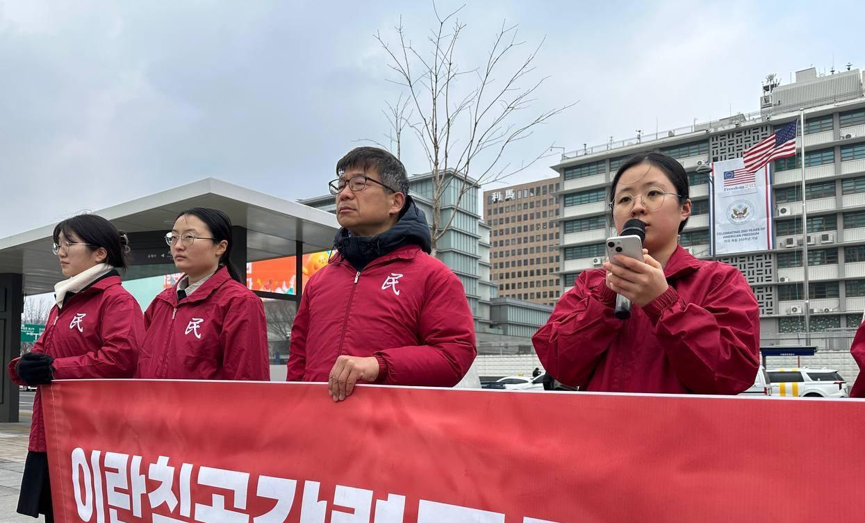6일 민중민주당(민중당)은 미대사관앞에서 <이란침공강력규탄! 서아시아전도발제국주의타도!> 16차정당연설회를 진행했다.