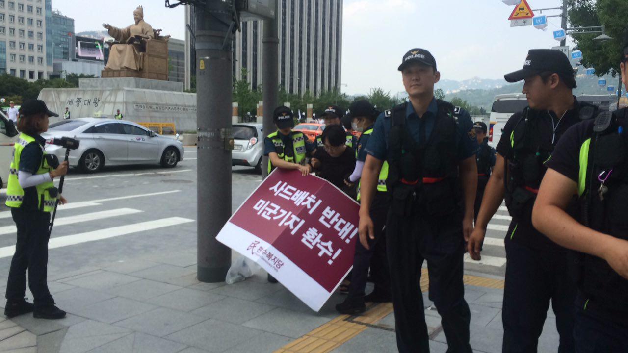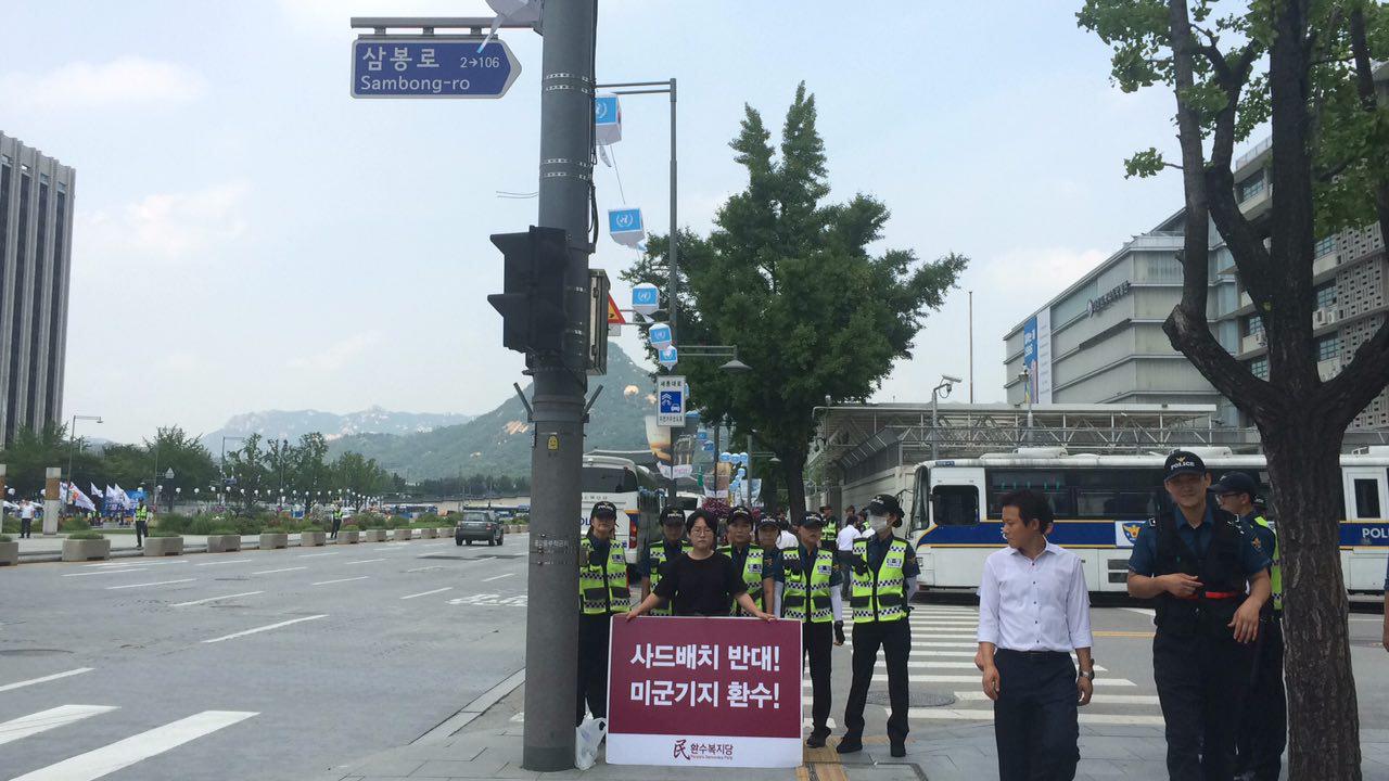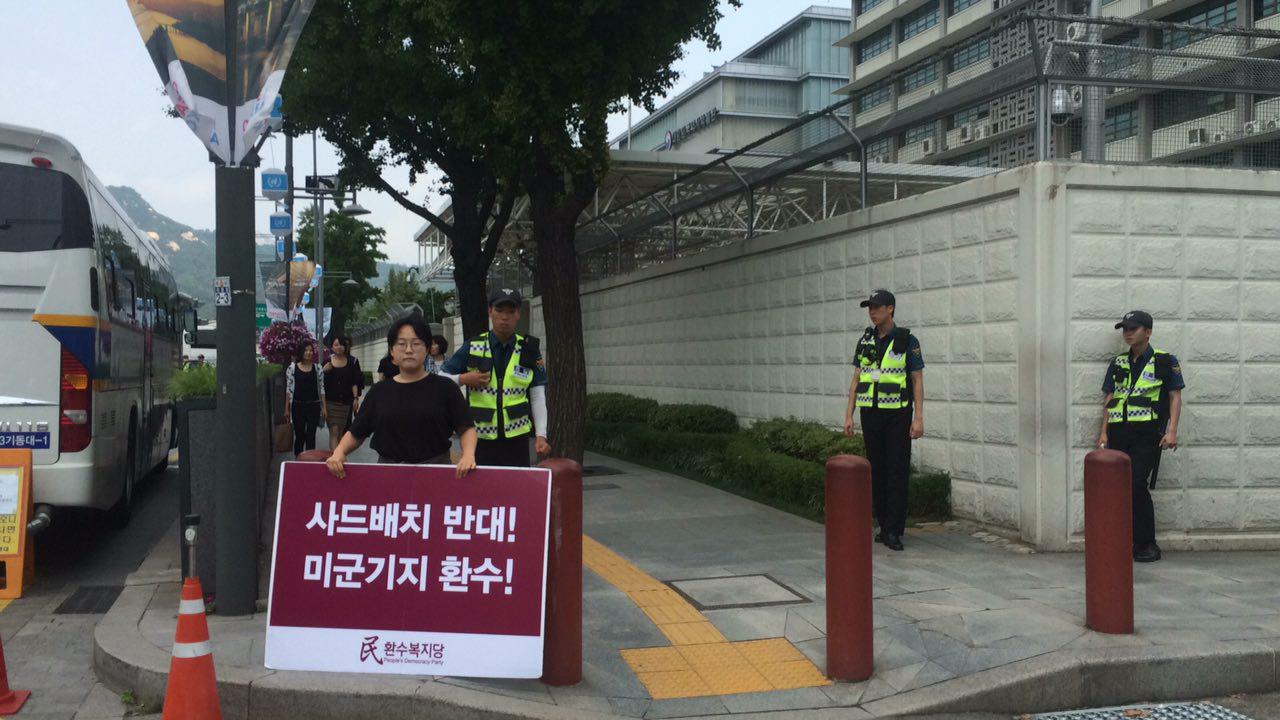 사드배치 반대 미군기지 환수 미대사관앞 시위 3일째