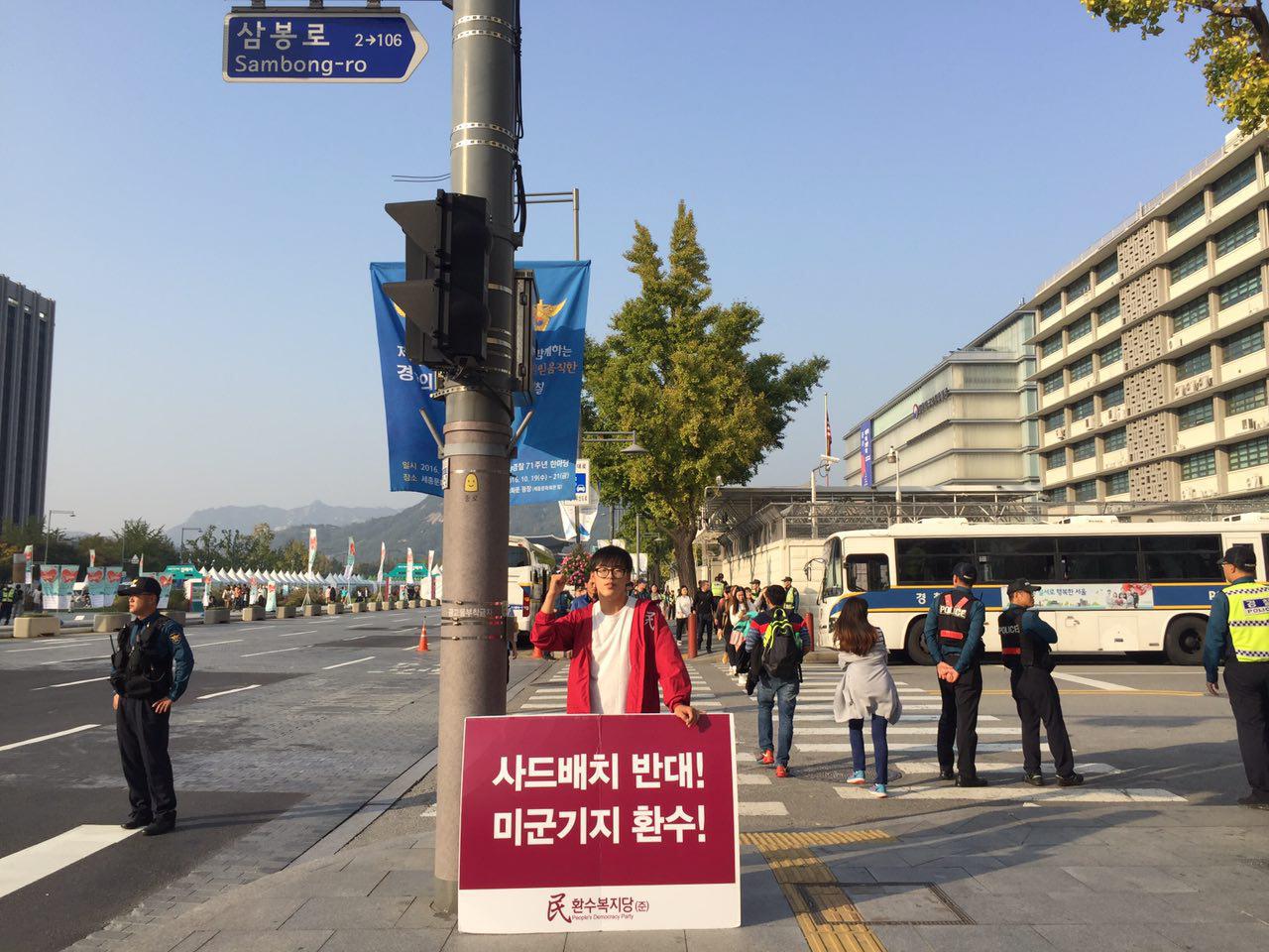 사드배치 반대 미군기지 환수 미대시관앞 1인시위 95일째