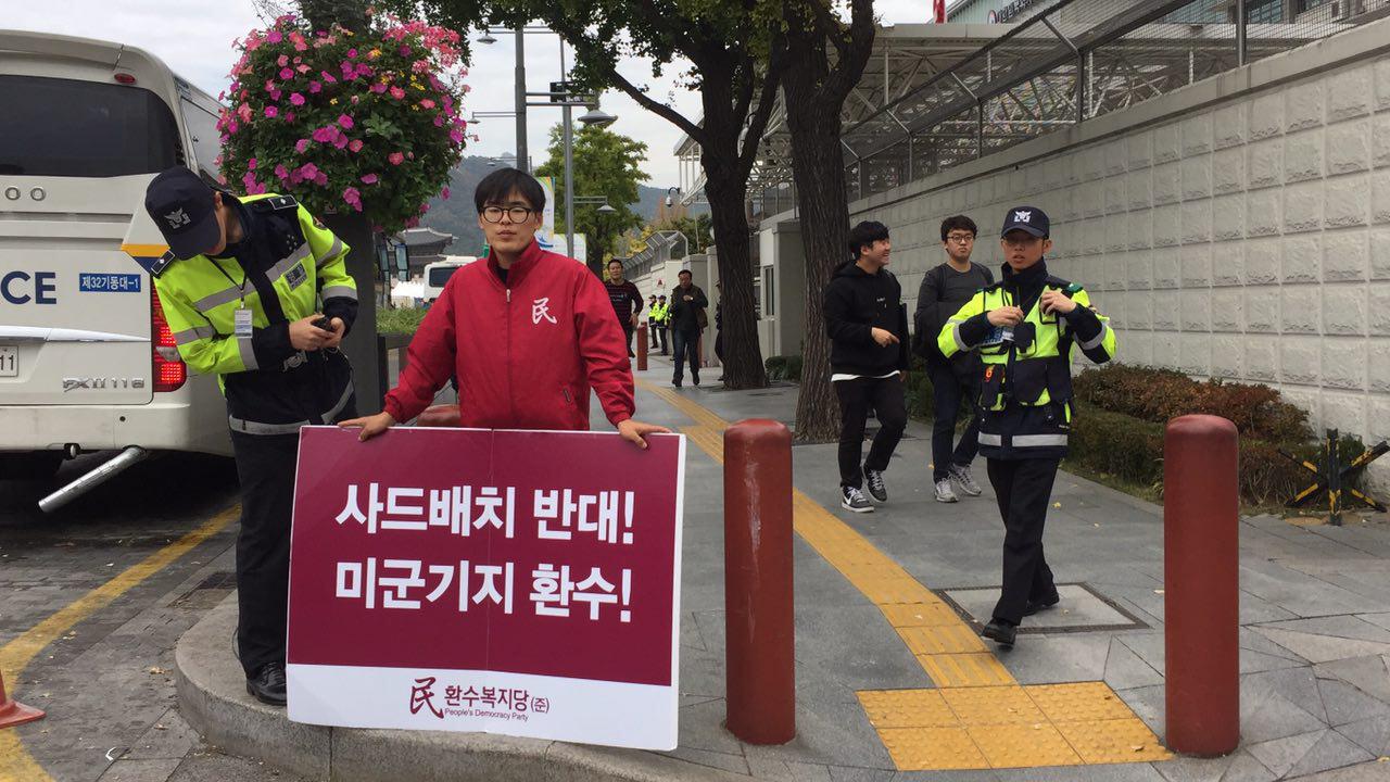 사드배치 반대 미군기지 환수 미대시관앞 1인시위 97일째
