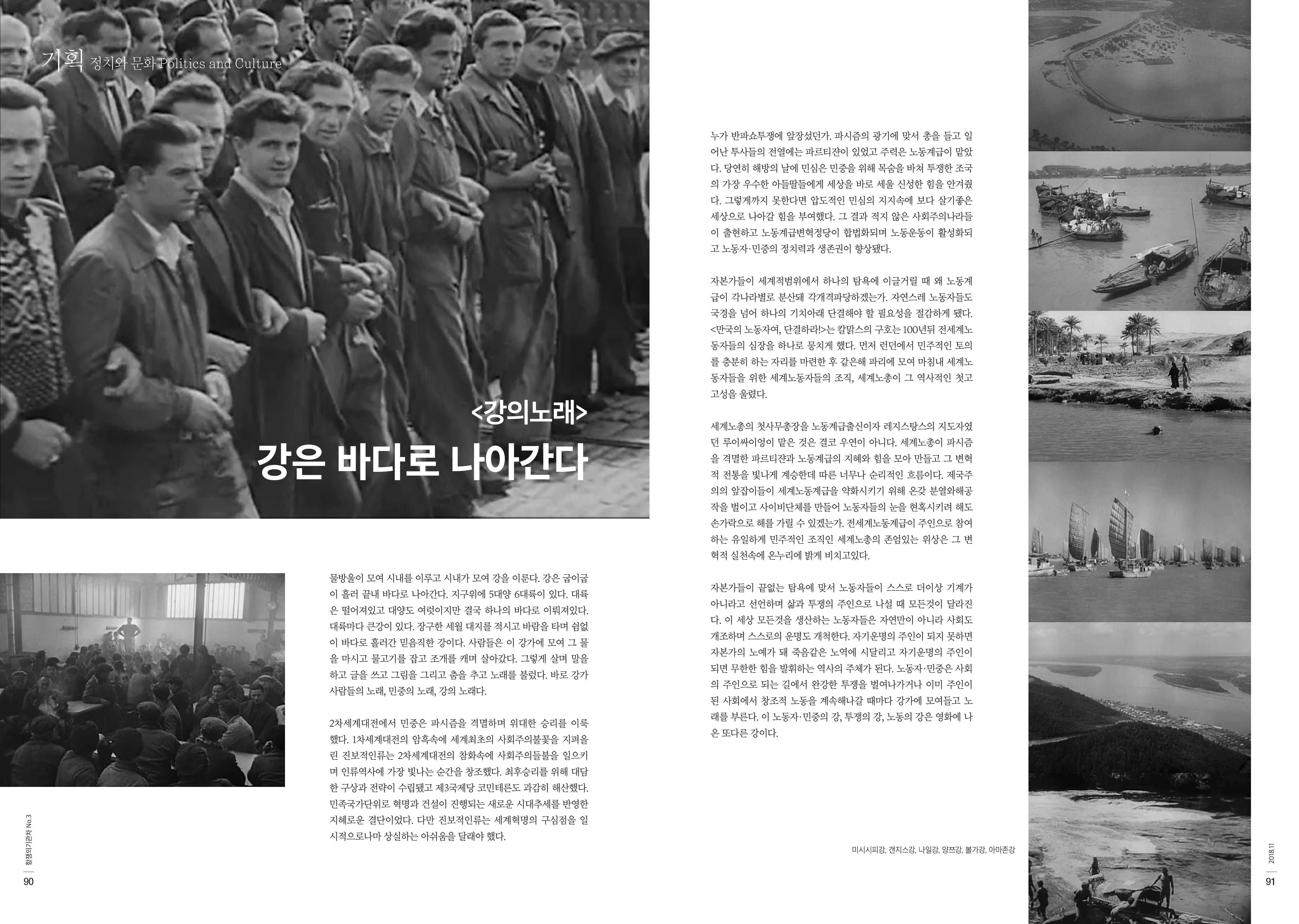 민중민주당이만드는 진보정치시사월간지 <항쟁의기관차> 11월호 <원년>에 실린 <강의노래> 평론이다.