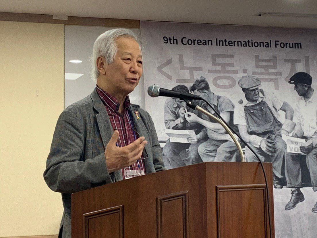 코리아국제포럼 첫째날 주제 노동민생복지의 보조발제 첫 순서로 노동사회과학연구소 채만수소장이 마이크를 잡았다.