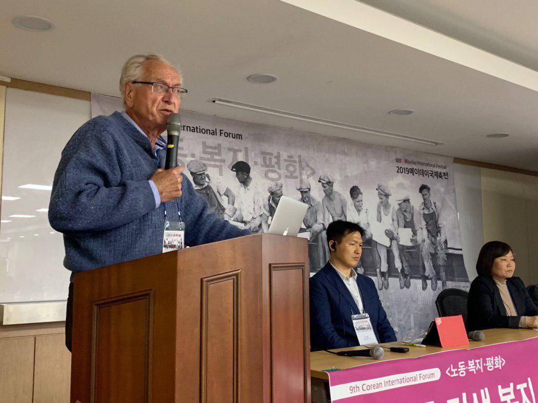 27일 서울용산철도회관에서 진행된 9회코리아국제포럼<노동·복지·평화>에 참여한 베흐나흐프리오가 마지막 발언을 했다.
