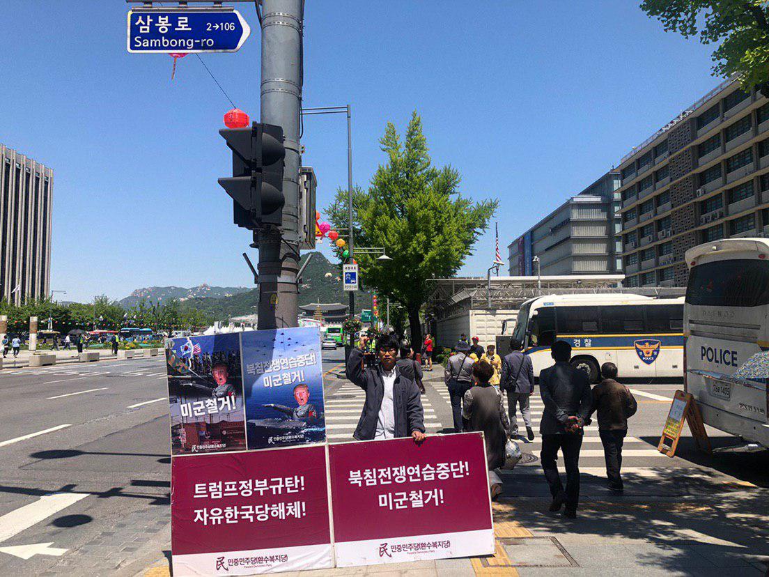 <트럼프정부규탄! 자유한국당해체!>,<북침전쟁연습중단! 미군철거!>를 촉구하며 무기한 비상행동을 전개 중입니다.