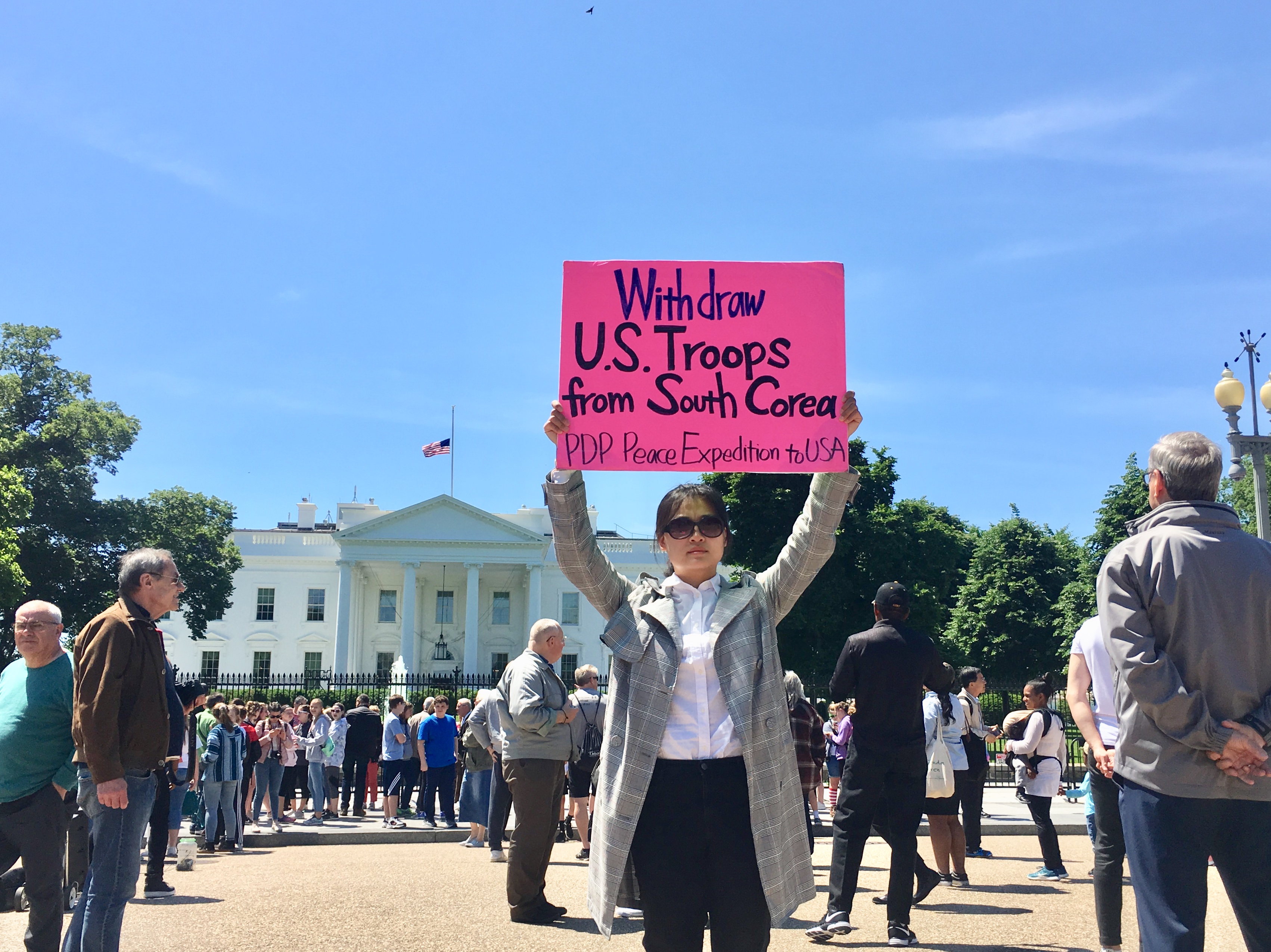 民해외원정미국원정 8차미국평화원정 미백악관앞평화시위 모음(5.14~5.19) 2019년 5월 19일 FacebookTwitter 민중민주당(환수복지당) 미국평화원정단은 19일(현지시간) 워싱턴D.C 백악관앞에서 <내정간섭중단!>, <미군철거!>, <북미평화협정즉각체결!>, <대북제재해제!> <모든전쟁연습전면철거> 등을 촉구하는 평화시위를 총 754일째 진행했다.