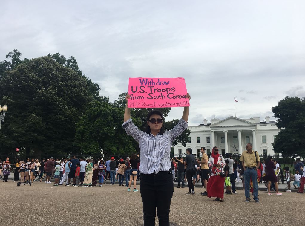 민중민주당(환수복지당미국평화원정단은 10일(현지시간워싱턴D.C 백악관앞에서 <내정간섭중단!>, <미군철거!>, <북미평화협정즉각체결!>, <대북제재해제!> <모든전쟁연습전면철거등을 촉구하는 평화시위를 총 776일째 진행했다.
