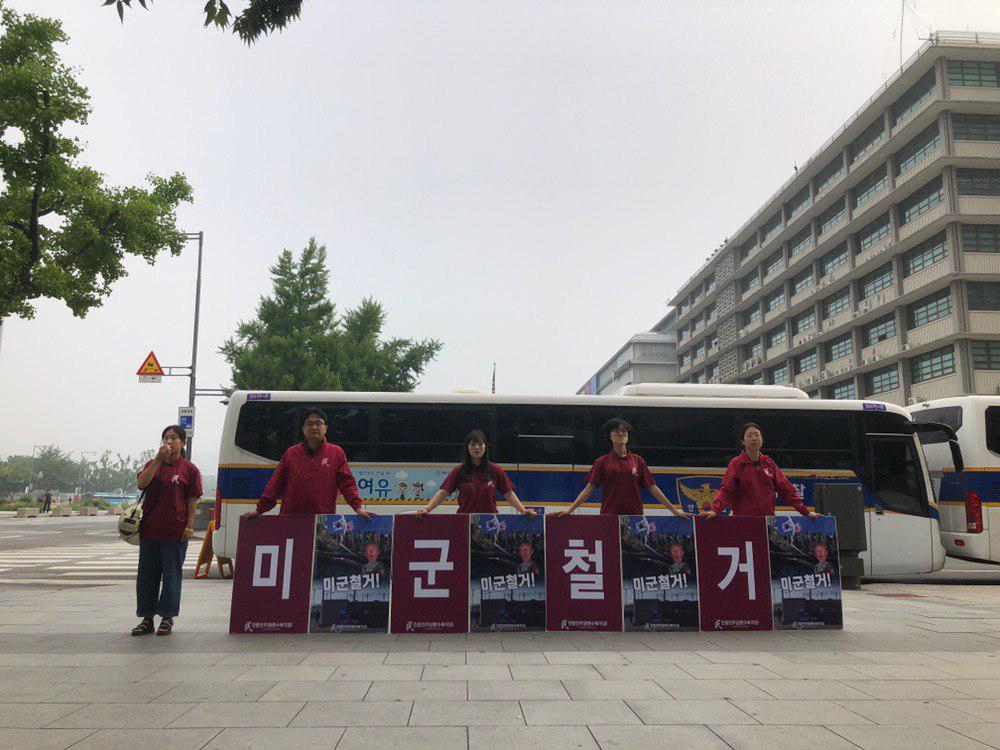 실천民평화시위 민중민주당 미대사관포위시위 (7.16~7.20 140일째) 2019년 7월 20일 FacebookTwitter 7월20일 우리당은 미대사관 사방을 포위하는 1인시위·정당연설회를 140일째 진행했습니다. <미>, <군>, <철>, <거> 한글자구호판과 <미군철거!>이미지피씨를 들고 사방1인시위를 진행했습니다. <트럼프정부규탄! 자유한국당해체! 미군철거!> 민중민주당 미대사관포위시위 See more See more See more See more See more See more See more See more See more