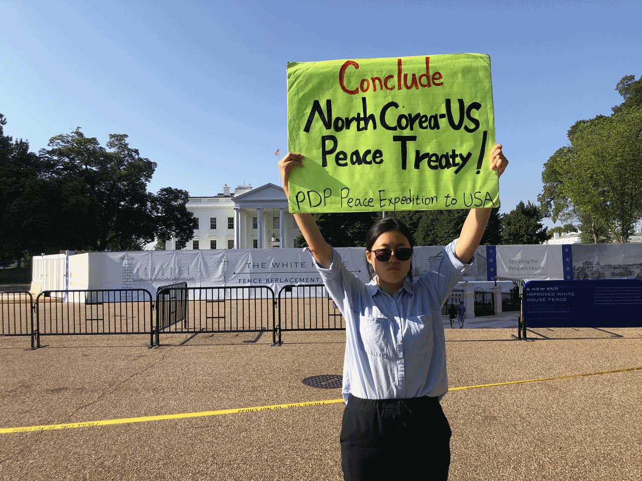 民해외원정미국원정 8차미국평화원정 미백악관앞평화시위 모음(7.26~7.30) 2019년 7월 30일 FacebookTwitter 민중민주당(환수복지당) 미국평화원정단은 30일(현지시간) 워싱턴D.C 백악관앞에서 <내정간섭중단!>, <미군철거!>, <북미평화협정즉각체결!>, <대북제재해제!> <모든전쟁연습전면철거> 등을 촉구하는 평화시위를 총 826일째 진행했다.