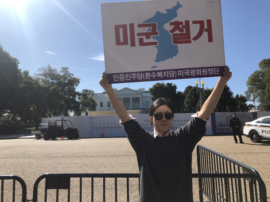 民해외원정미국원정 8차미국평화원정 미백악관앞평화시위 모음(10.11~10.15) 2019년 10월 15일 FacebookTwitter 민중민주당(환수복지당) 미국평화원정단은 15일(현지시간) 워싱턴D.C 백악관앞에서 <내정간섭중단!>, <미군철거!>, <북미평화협정즉각체결!>, <대북제재해제!> <모든전쟁연습전면철거> 등을 촉구하는 평화시위를 총 900일째 진행했다.