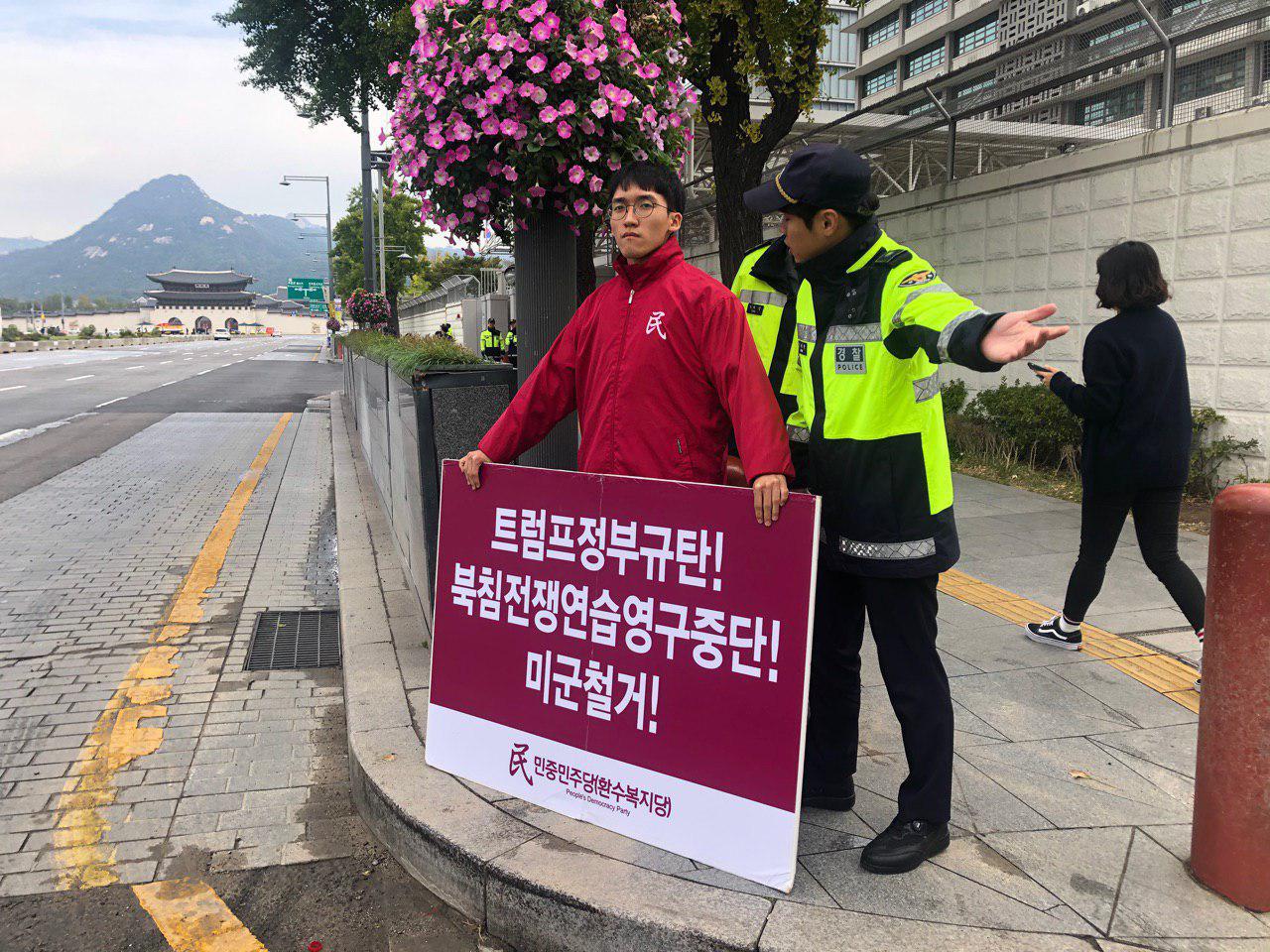 실천民평화시위 민중민주당, 미대사관평화시위 모음(10.16~10.20 1188일째) 2019년 10월 20일 FacebookTwitter 민중민주당(환수복지당)은 20일 미대사관앞에서 <트럼프정부규탄! 북침핵전쟁연습영구중단! 미군철거!>를 촉구하는 피시를 들고 1188일째 평화시위를 이어갔다.