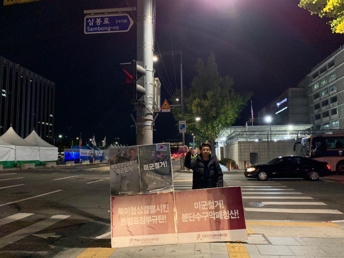 실천民무기한비상행동 민중민주당, 무기한비상행동 모음(10.26~10.30 764일째) 2019년 10월 30일 FacebookTwitter 우리당은 10월30일 서울광화문 미대사관앞에서 <제재반대·평화협상100일행동>과 반전평화·악폐청산을 위한 <무기한 비상행동>을 864일째 전개했습니다. <트럼프정부규탄! 자유한국당해체!>,<북침전쟁연습중단! 미군철거!>를 촉구하며 무기한 비상행동을 전개 중입니다.
