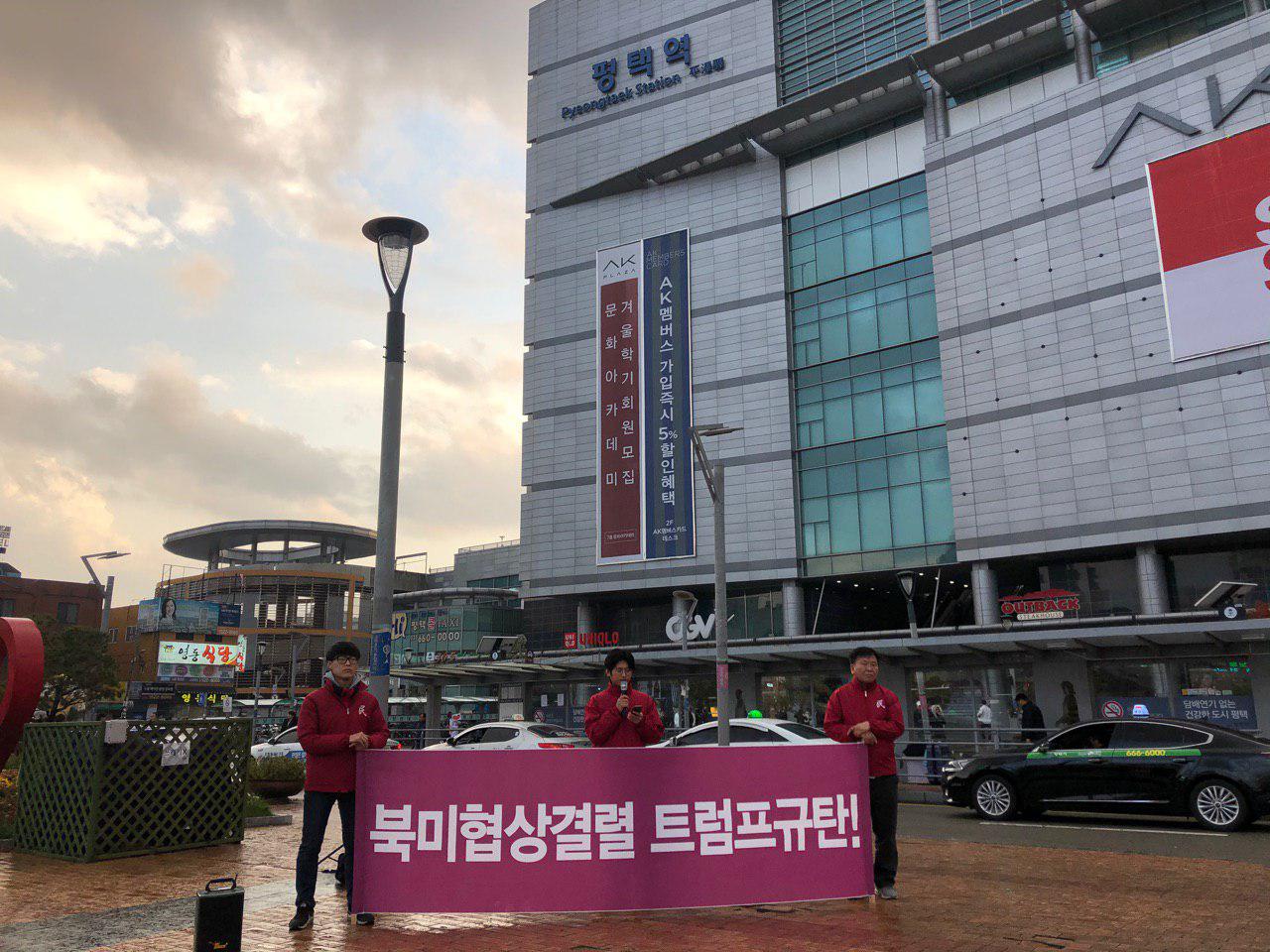15일 평택역앞 〈북미협상결렬트럼프규탄! 6.12공동성명이행! 미군철거!〉 정당연설회