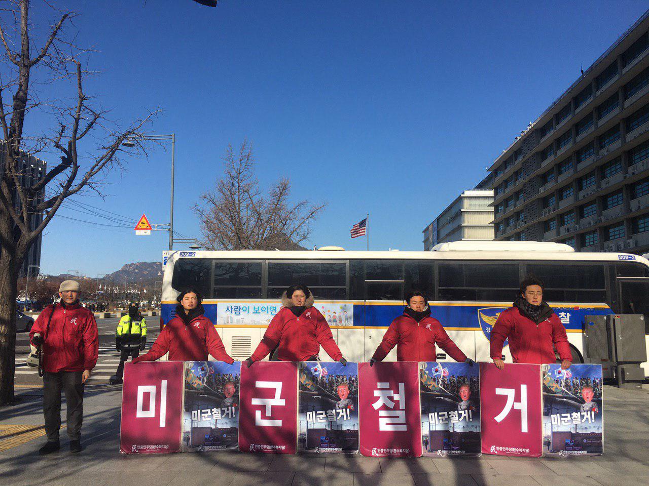 실천民평화시위 민중민주당 미대사관포위시위 (12.1~12.5 278일째) 2019년 12월 6일 FacebookTwitter 12월5일 우리당은 미대사관 사방을 포위하는 1인시위·정당연설회를 278일째 진행했습니다. <미>, <군>, <철>, <거> 한글자구호판과 <미군철거!>이미지피씨를 들고 사방1인시위를 진행했습니다. <트럼프정부규탄! 자유한국당해체! 미군철거!> 민중민주당 미대사관포위시위 See more See more See more See more See more